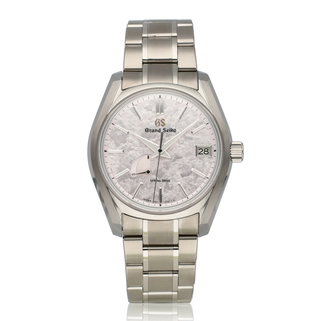 In very good condition Grand Seiko Heritage Collection in titanium with soft pink "Cherry Blossom" dial from 2022 complete with box and papers.