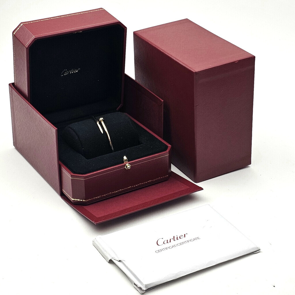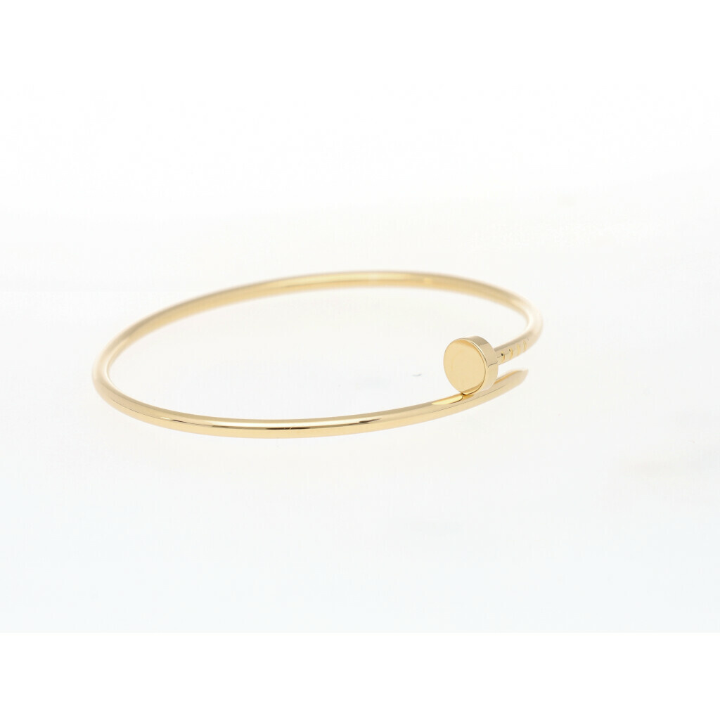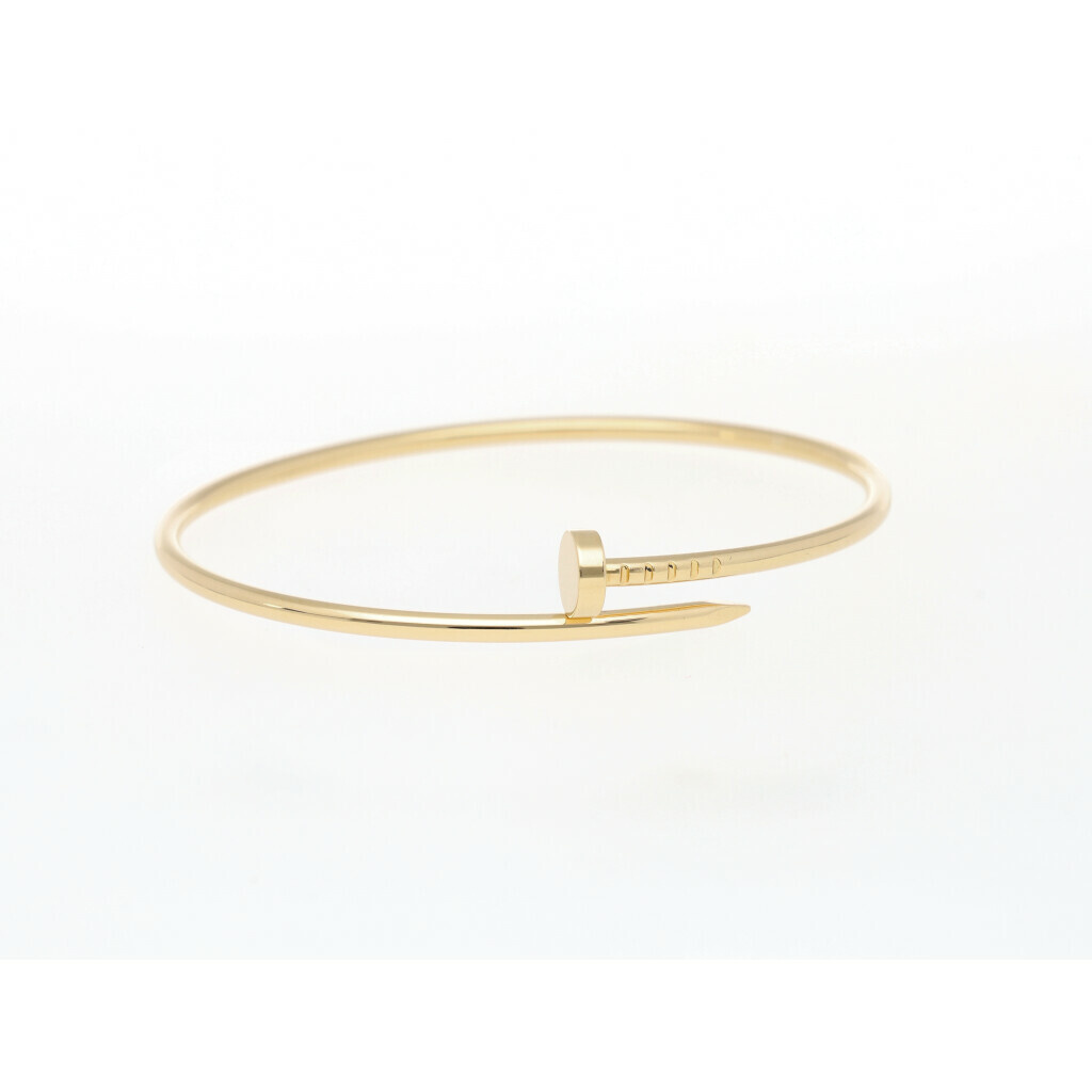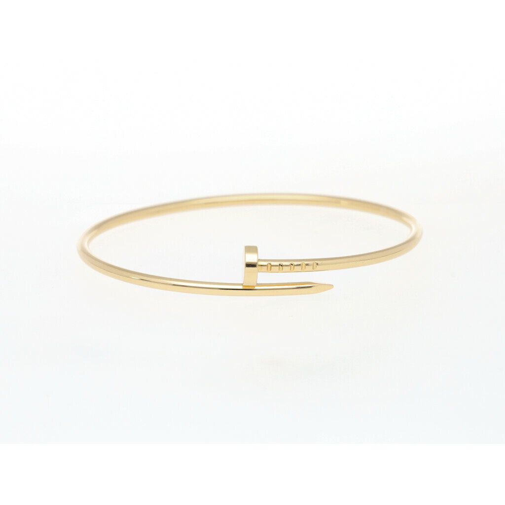 In very good condition Cartier Just un Clou nail bracelet in yellow gold reference CR B6062618 size 18 (cm) from 2023 complete with box and papers. Current listprice € 4.200,-.