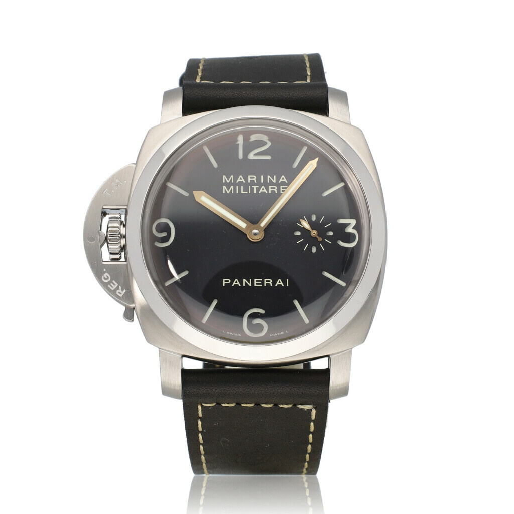 In very good condition Panerai Luminor Left Handed Marina Militare Special Edition from 2006 complete with box and papers. Limited edition to 1000 pieces worldwide.
