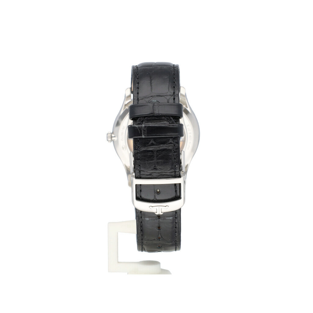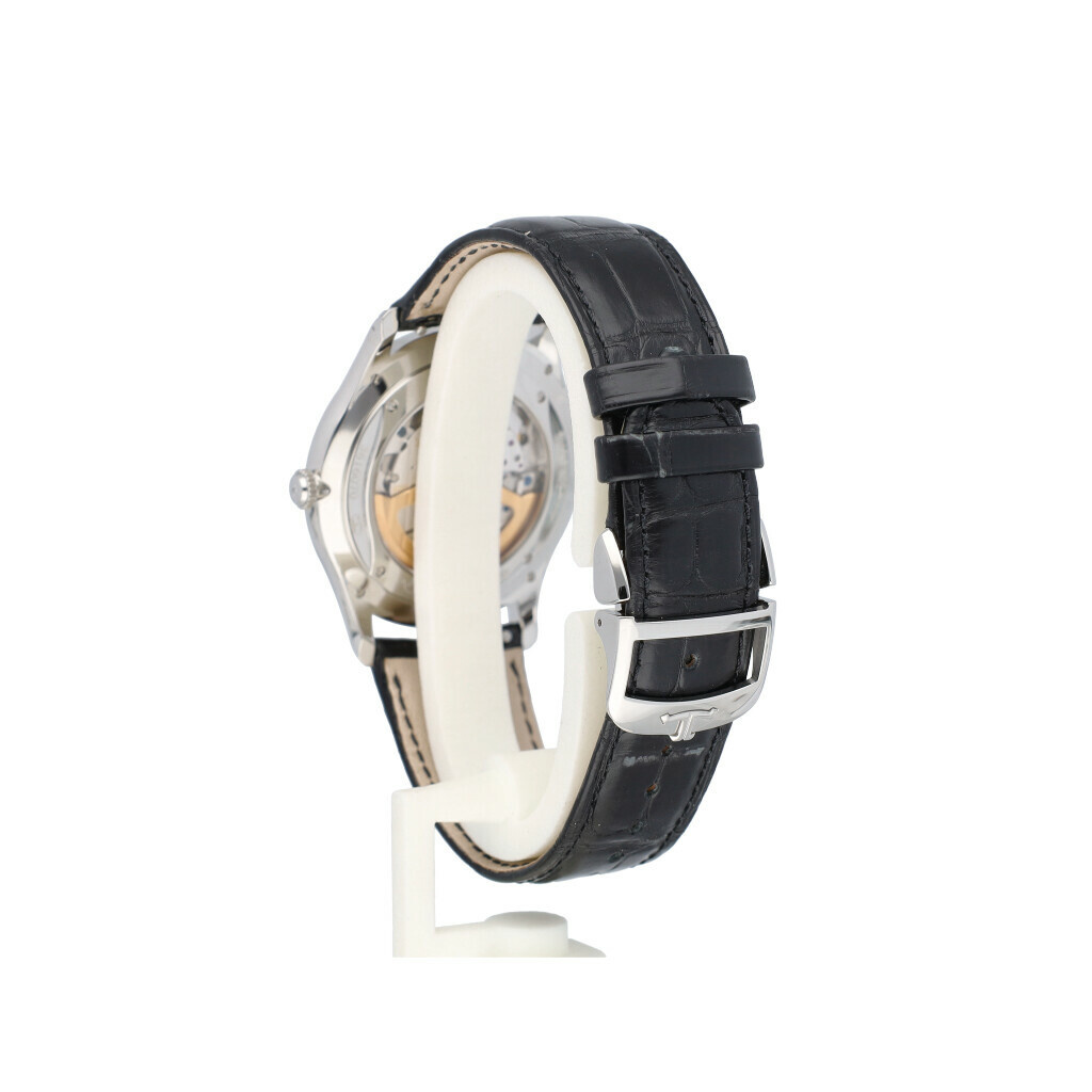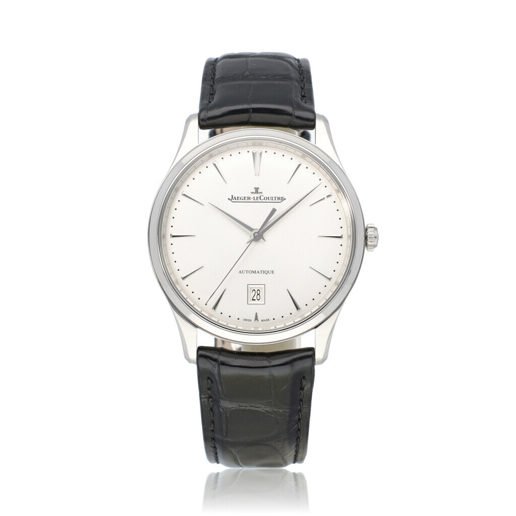 In very good condition Jaeger-LeCoultre Master Ultra Thin Date in steel with JLC leather strap from 2023 complete with box and papers.