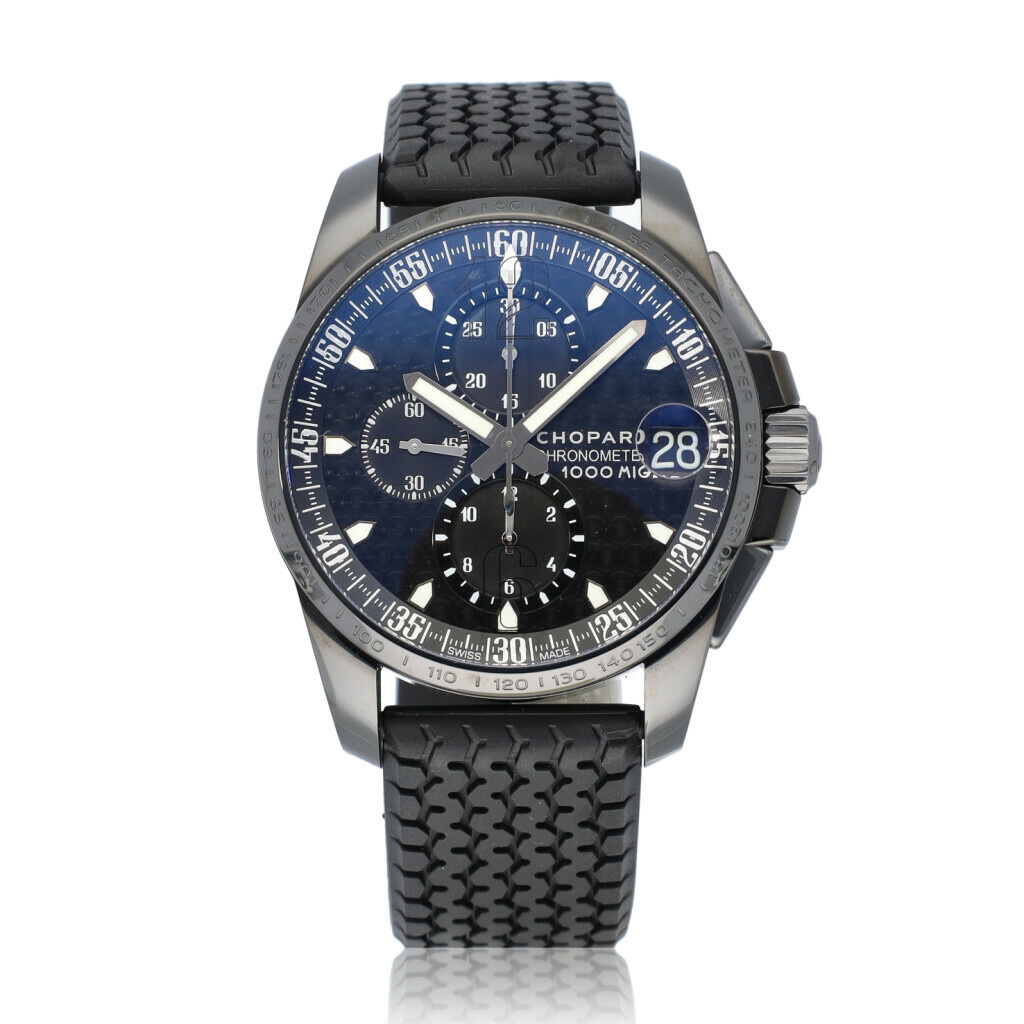 In very good condition Chopard Mille Miglia GT XL Chrono so called "Speed Black" complete with box and papers. No date filled in on certificaste. Limited edition 1000 pieces worldwide. Chopard serviced 9-2024 and not worn since. Chopard service certificate included.