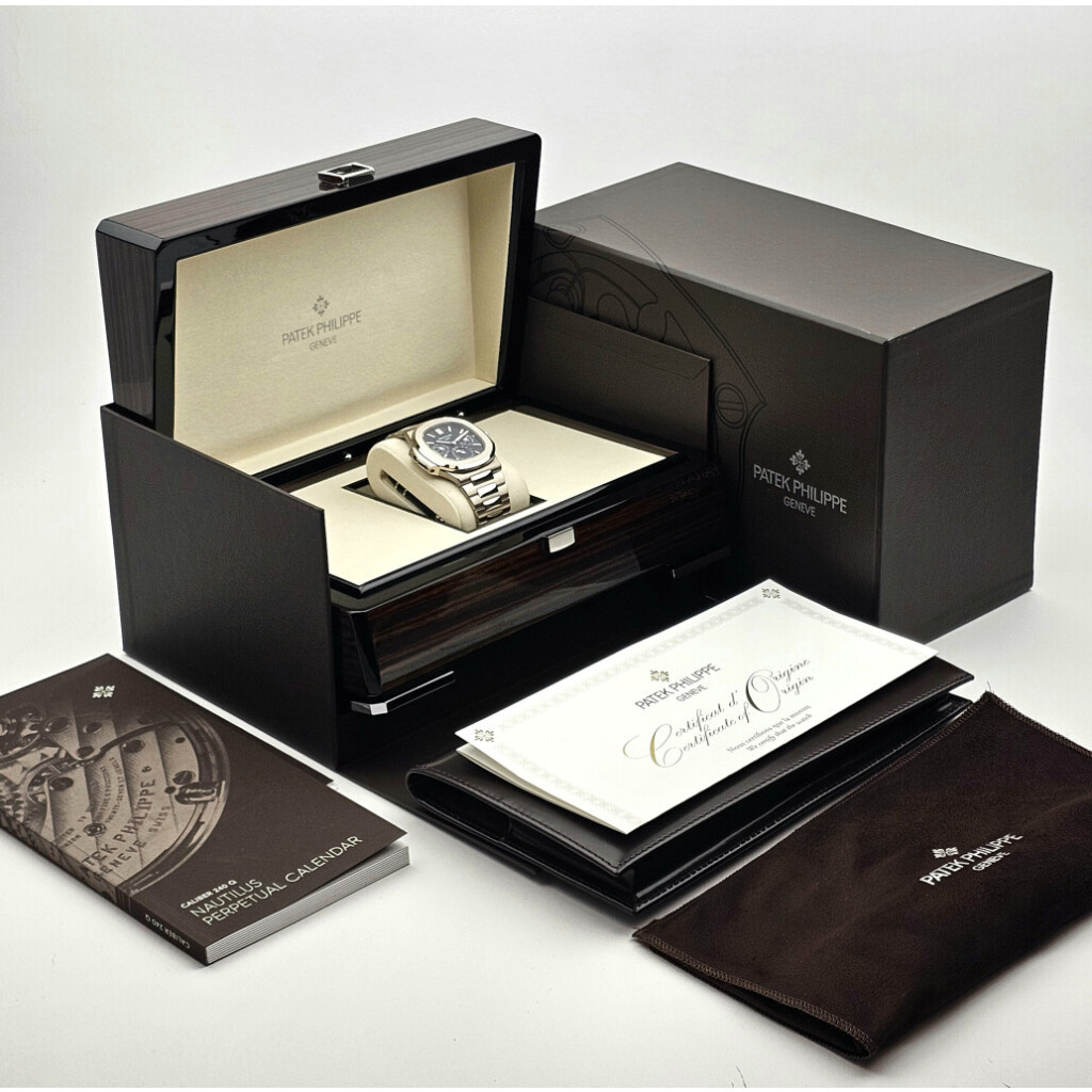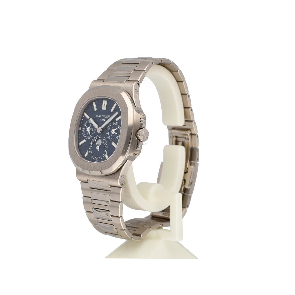 In very good condition Patek Philippe Nautilus Perpetual Calendar in white gold with blue dial and white gold bracelet from 2024 complete with box and papers.