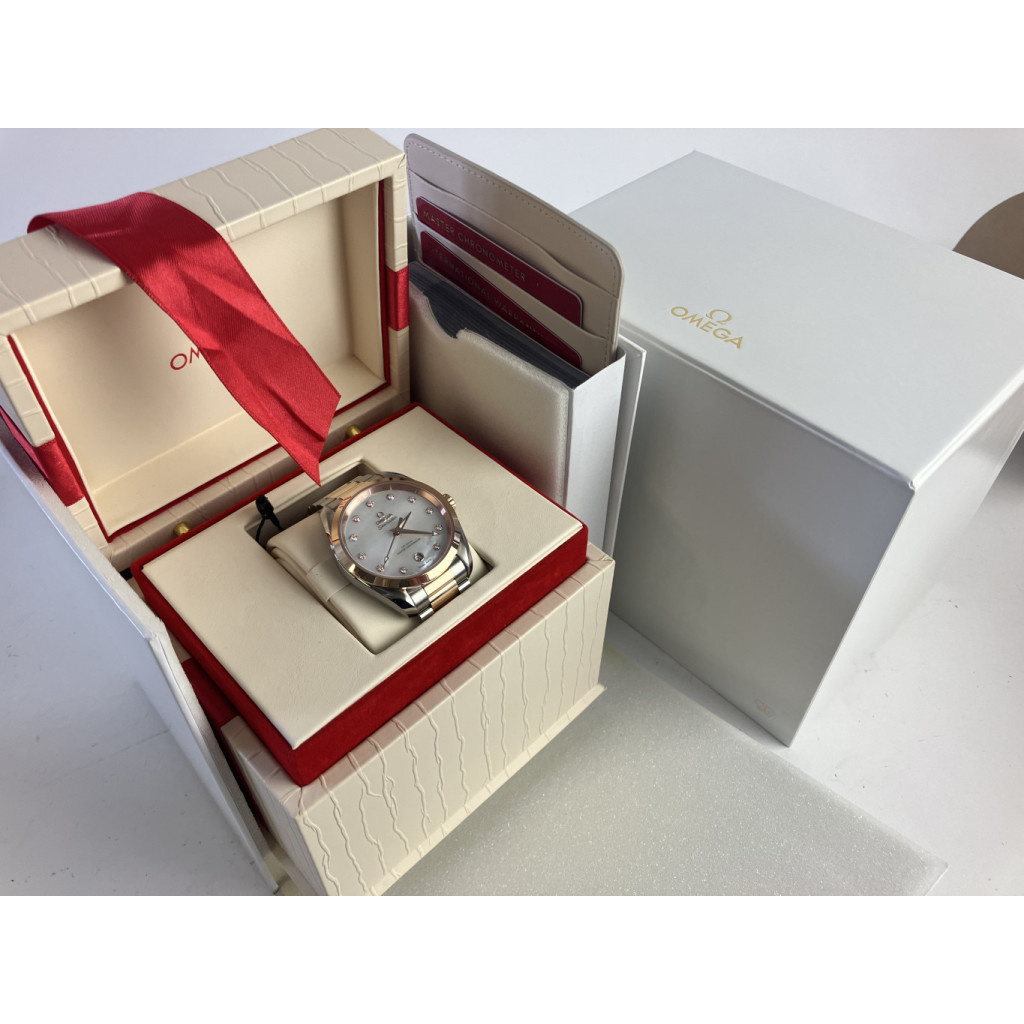 New, unworn Omega Seamaster Aqua Terra in steel and rose gold from 2025 complete with box and papers. Listprice: € 14.000,-. 21% VAT deductible when shipped outside of the European Union.