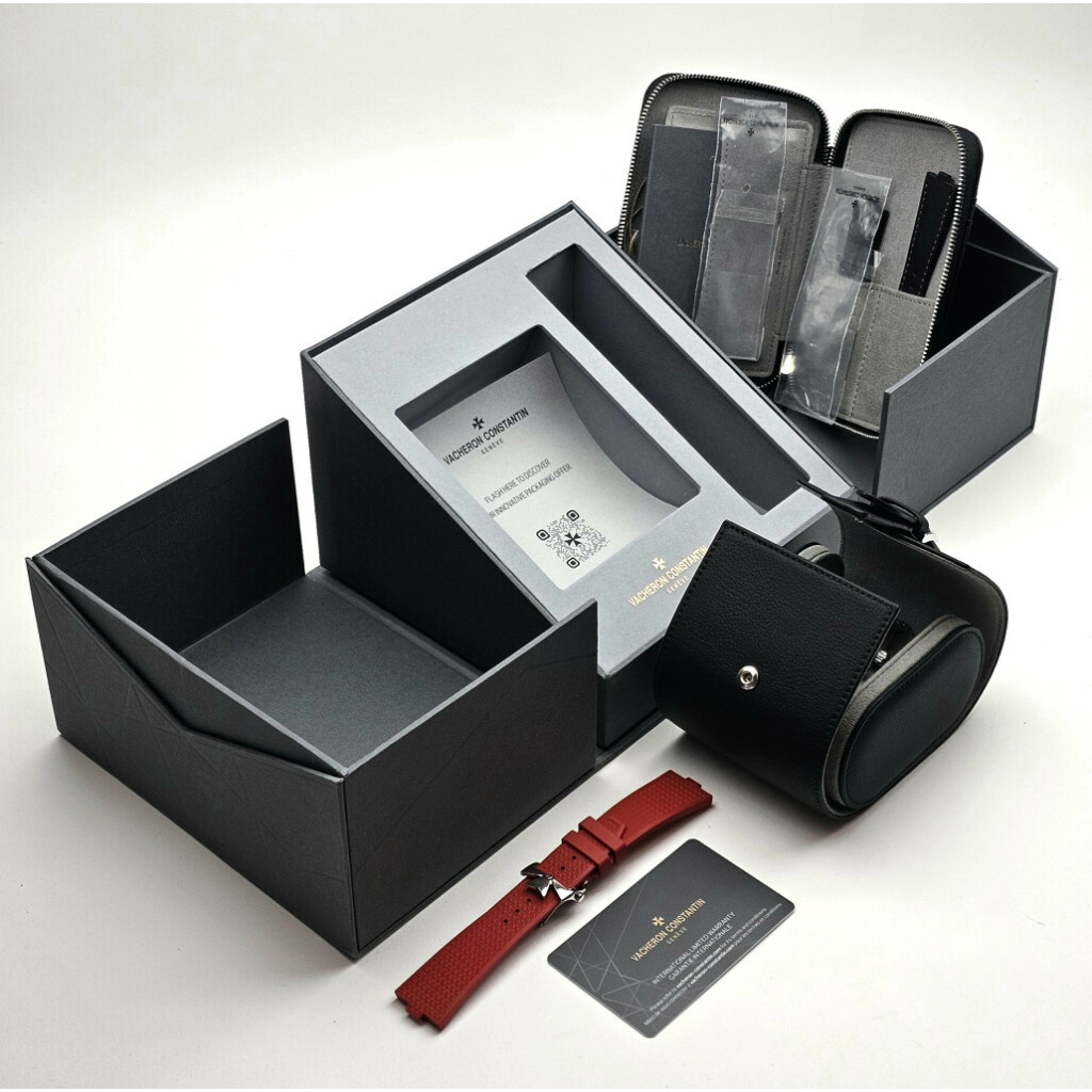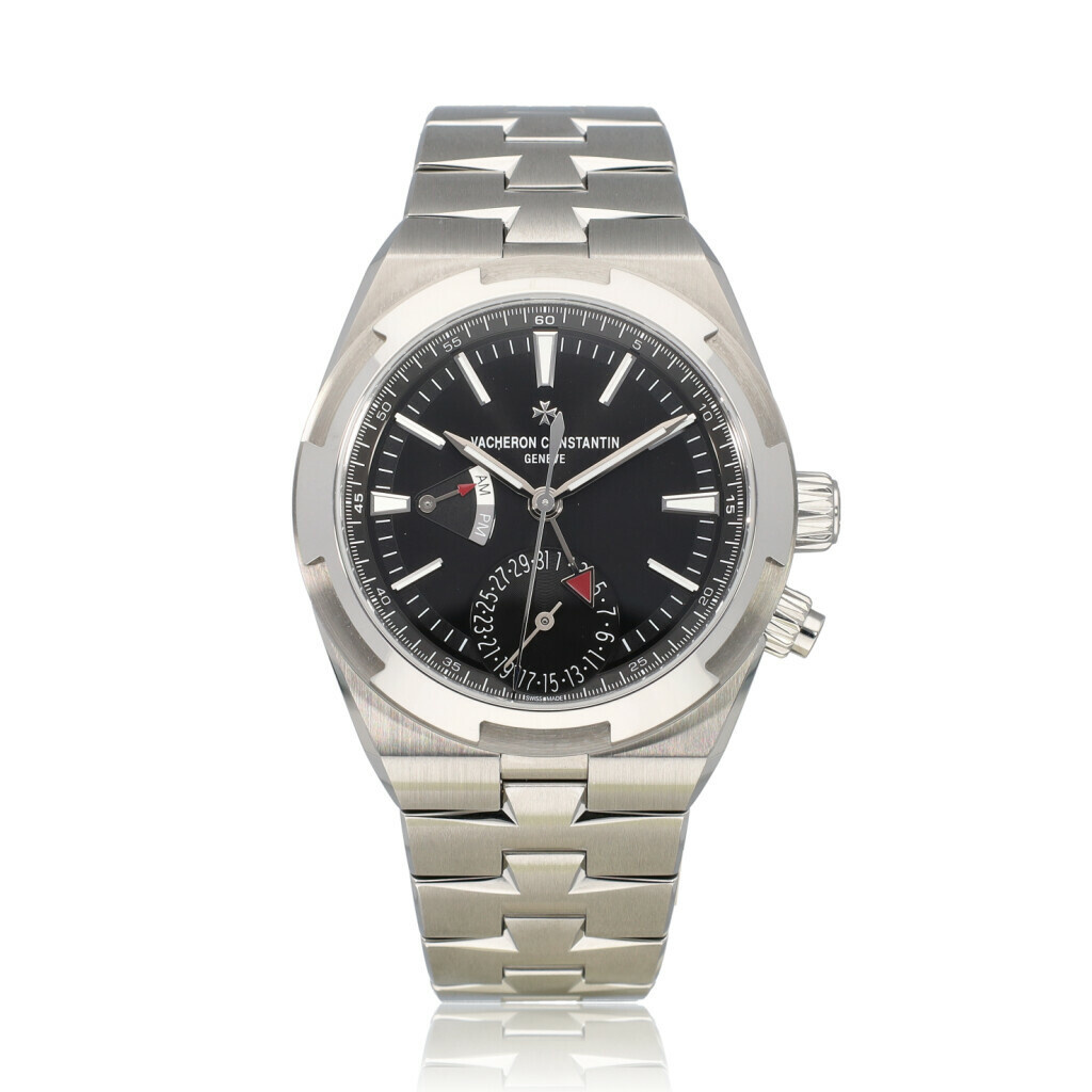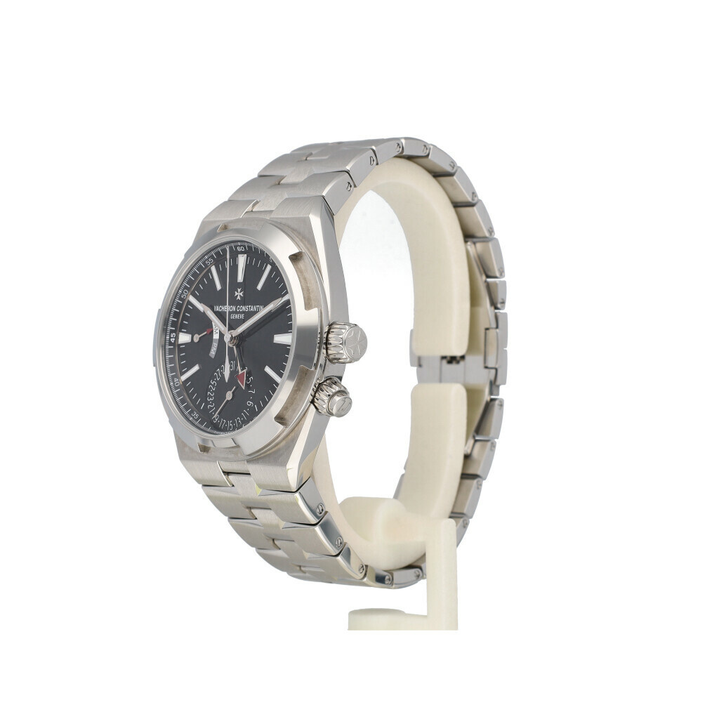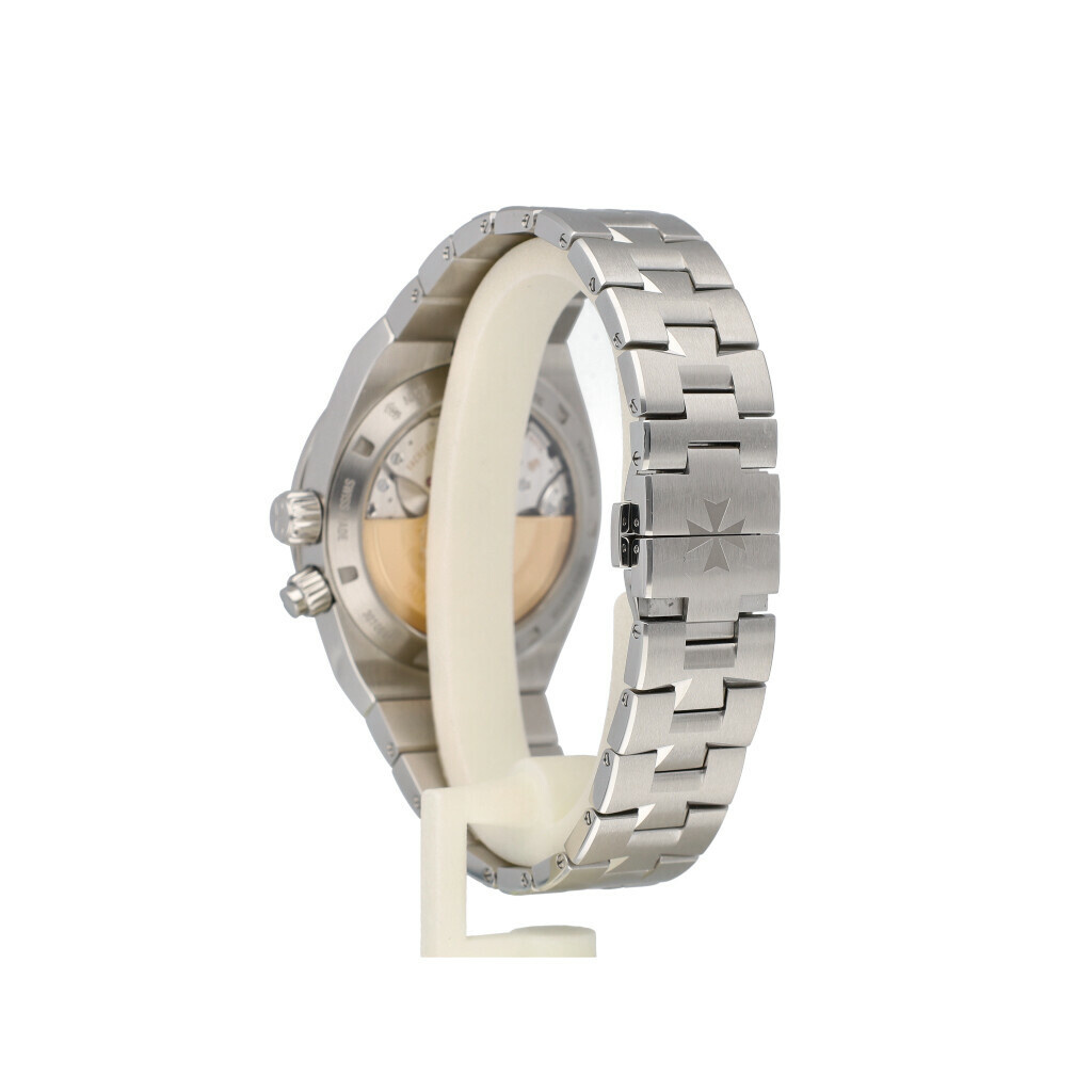 In very good condition Vacheron Constantin in steel with black dial and steel bracelet complete with box and papers. No date filled in on certificate.