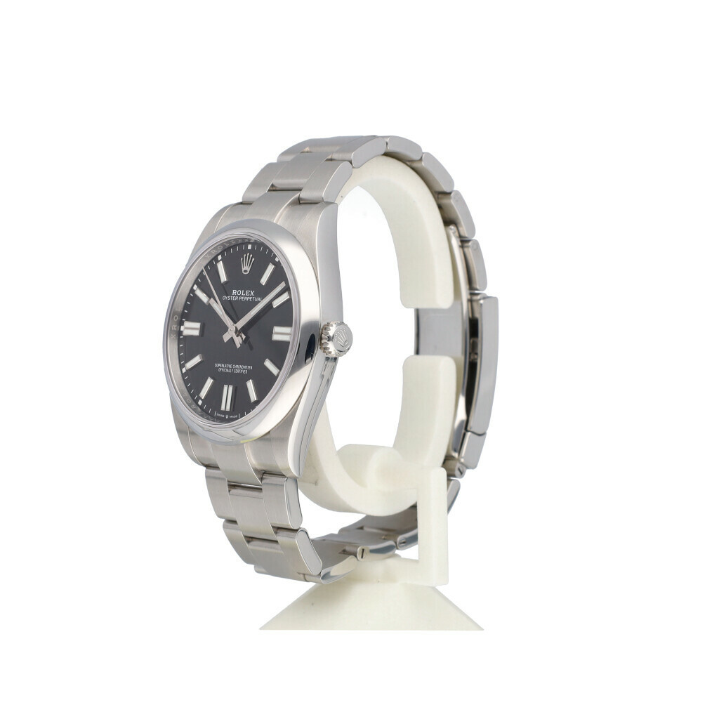 In very good condition Rolex Oyster Perpetual 41 in steel with black dial from 2024 complete with papers, no box. Rolex serviced 10-2025 and not worn since. Rolex service certificate included.