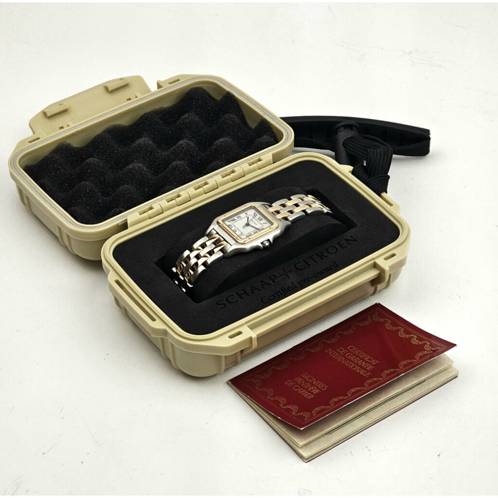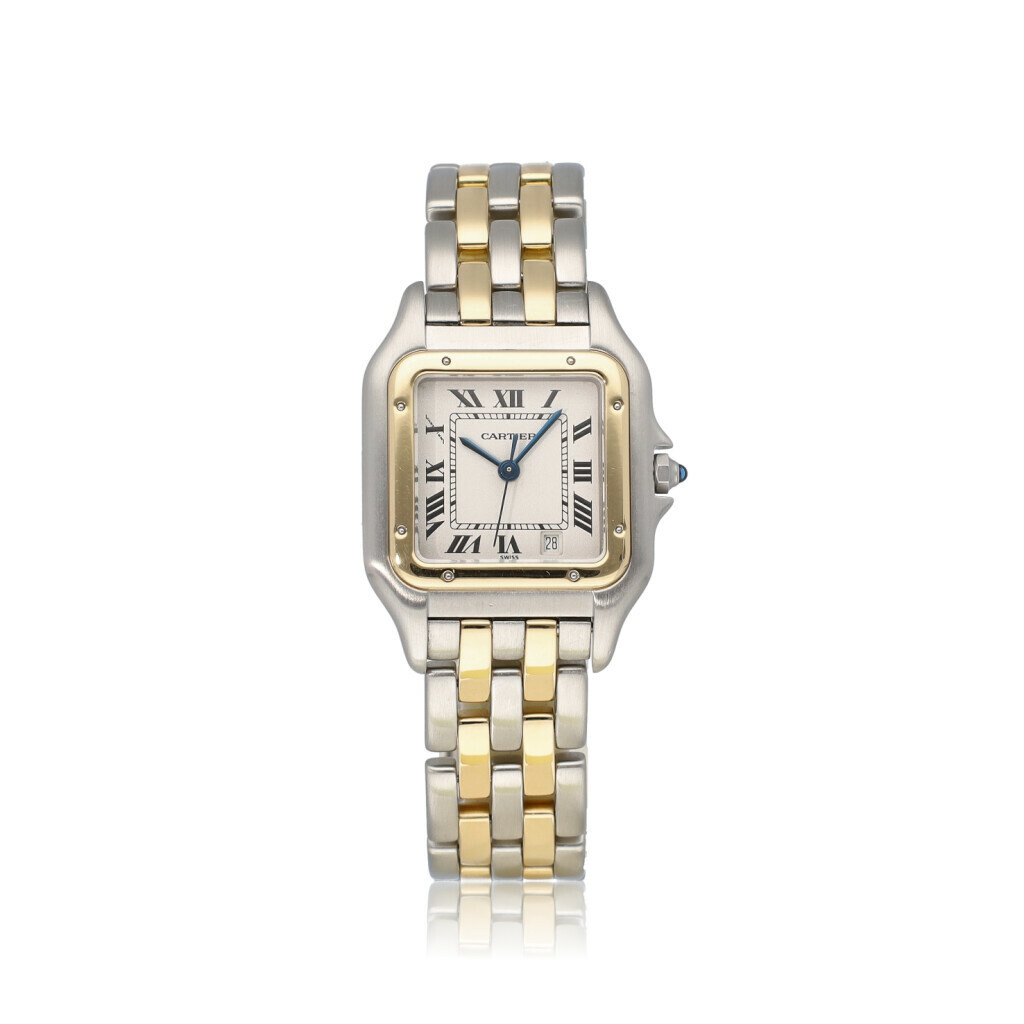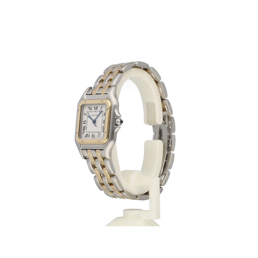 In very good condition Cartier Panthère in steel and yellow gold with ivory roman dial. complete with papers, no box.