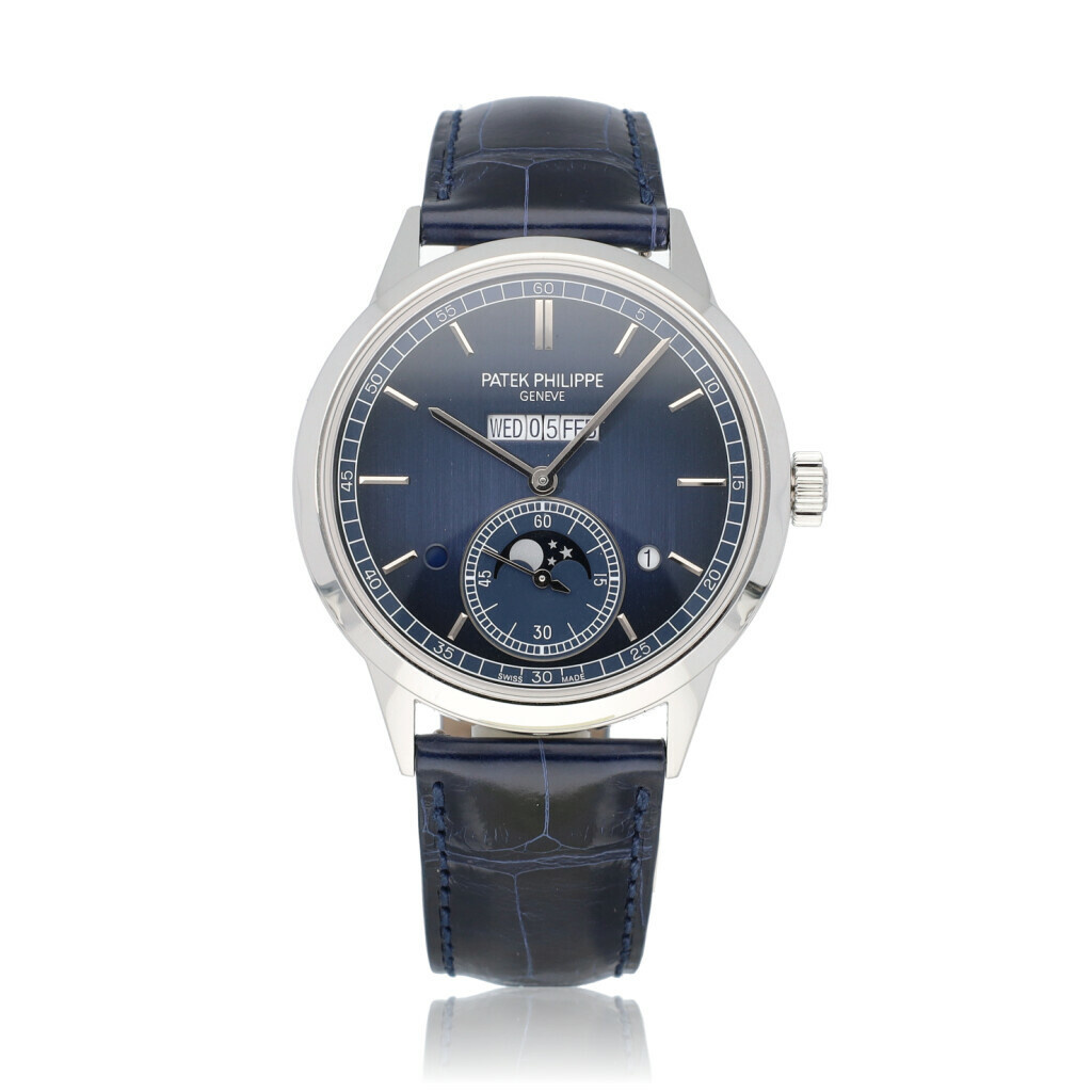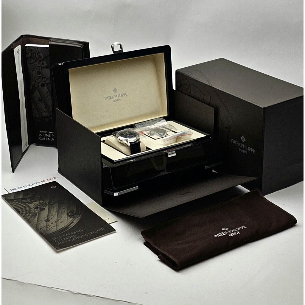 In very good condition Patek Philippe Perpetual Calendar in platinum from 2022 complete with box and papers. 21% VAT deductible when shipped outside of the European Union.