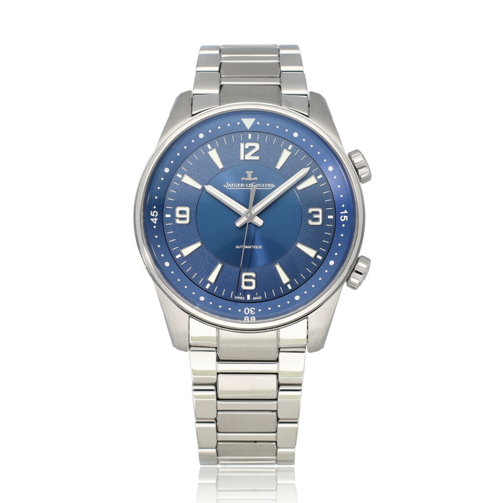 In very good condition Jaeger-LeCoultre Polaris Automatic in steel with blue dial from 2019 complete with box and papers. JLC serviced 12-2025 and not worn since. JLC service certificate included.