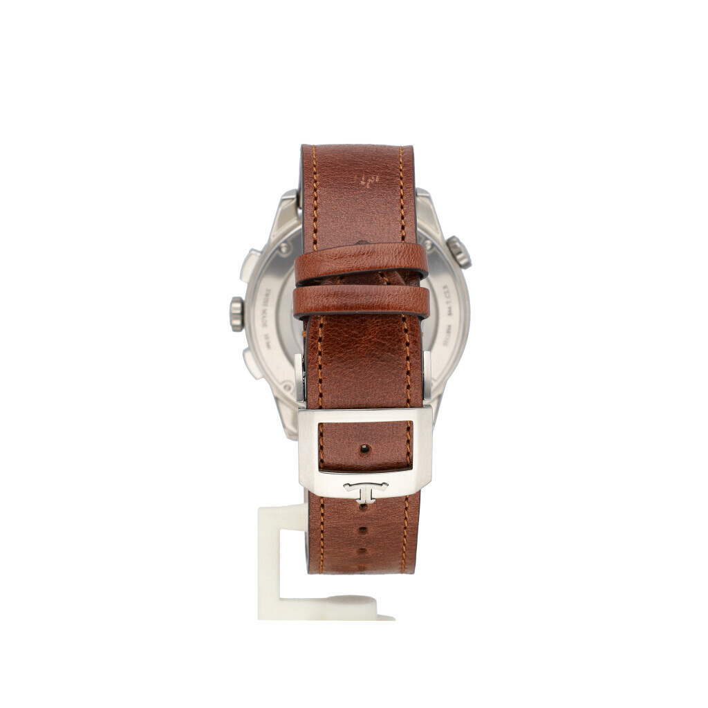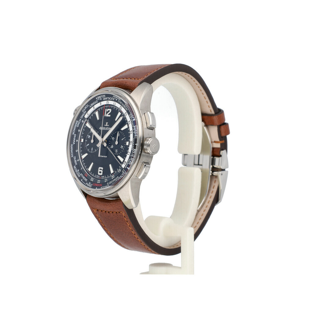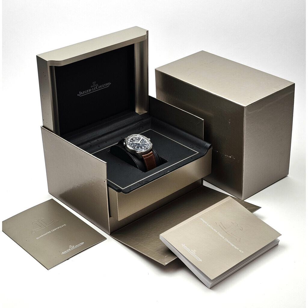 In very good condition Jaeger-LeCoultre Polaris in titanium with black dial and brand new brown JLC strap from 2018 complete with box and papers. JLC serviced 6-2025 and not worn since. JLC service papers included.