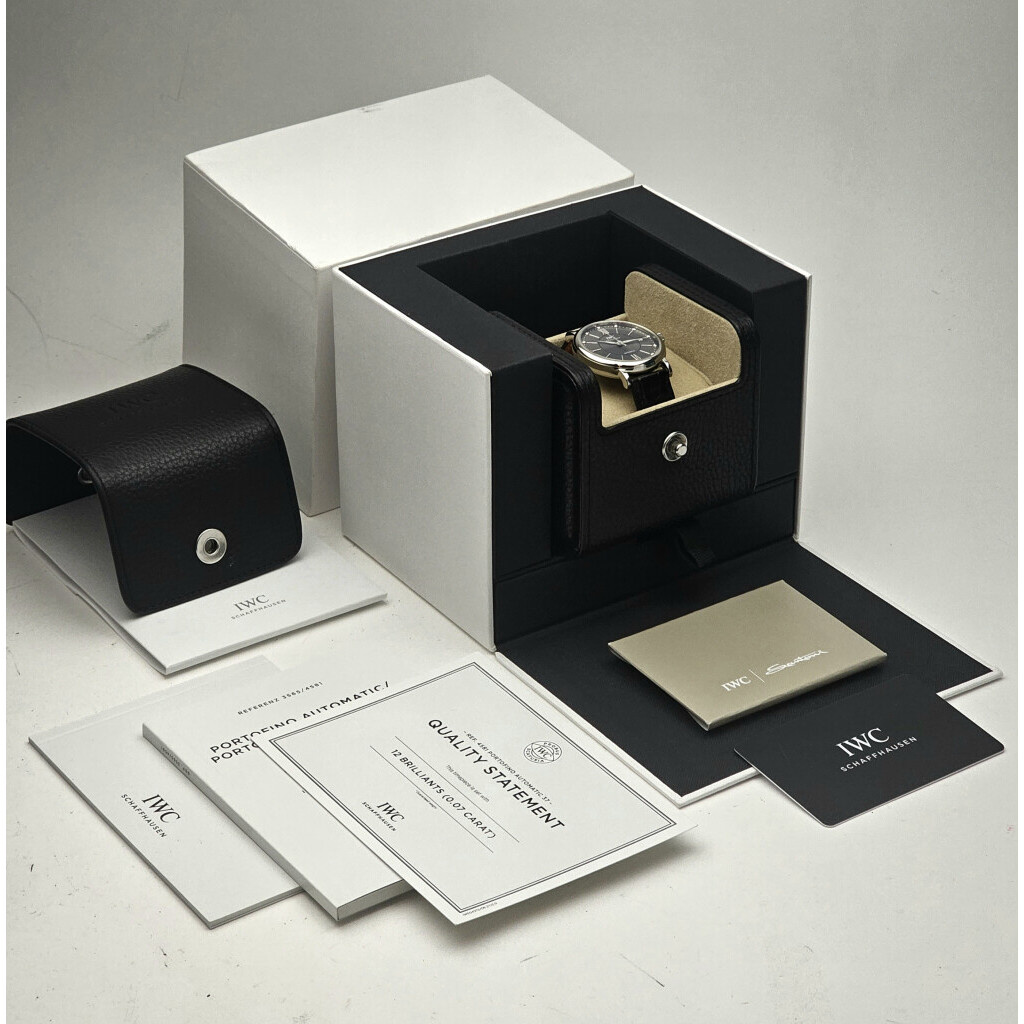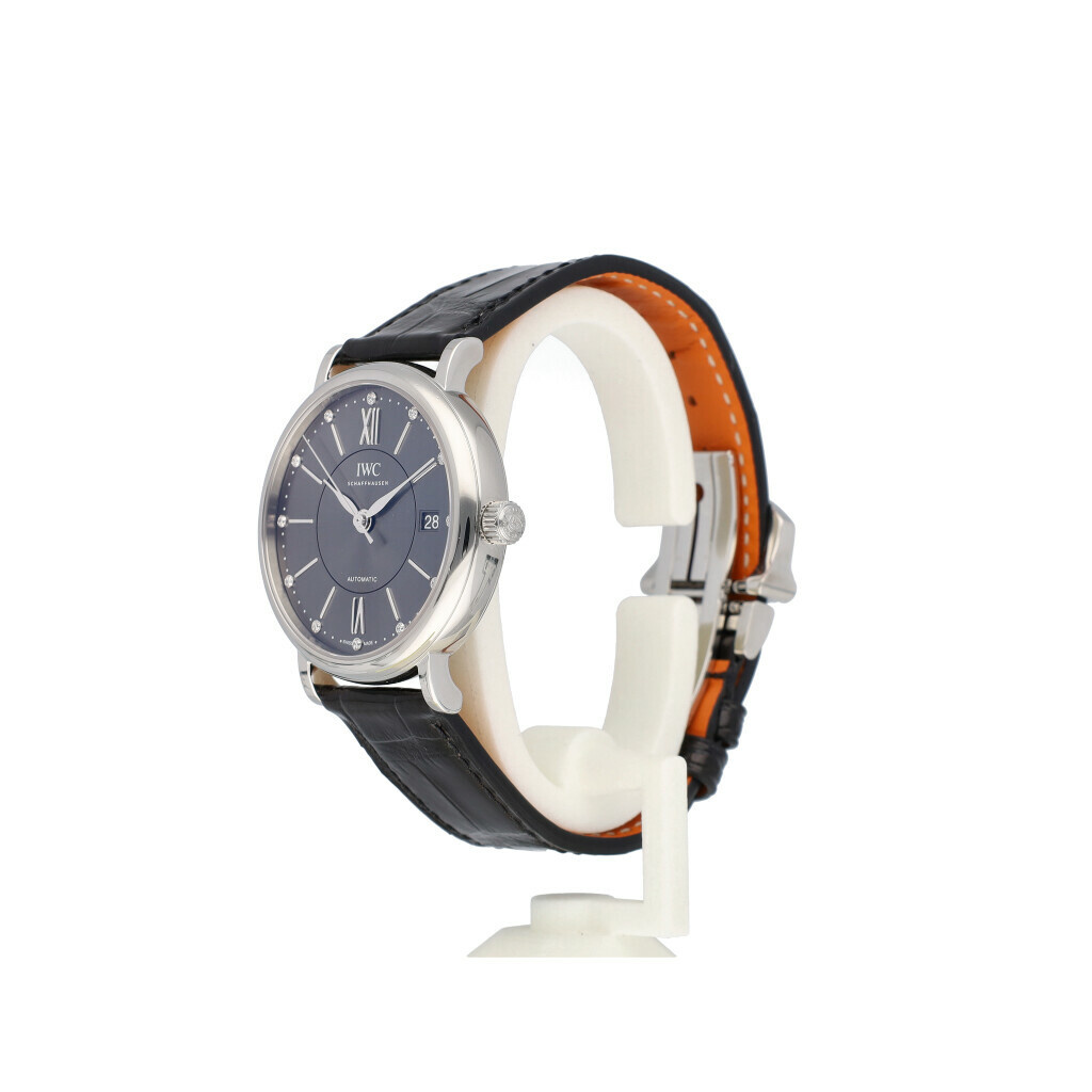 In very good condition IWC Portofino Midsize Automatic in steel with factory grey diamond dial and alligator leather IWC strap from 2022 complete with box and papers.