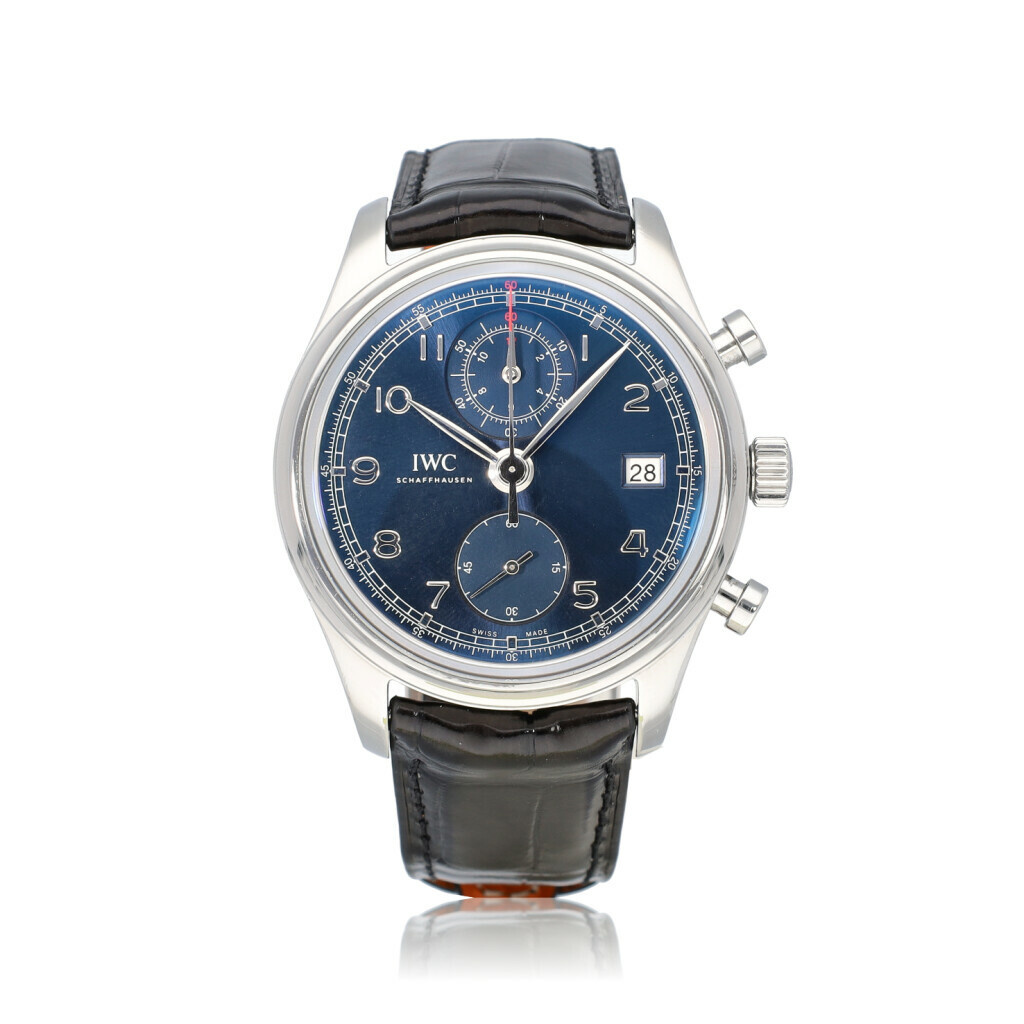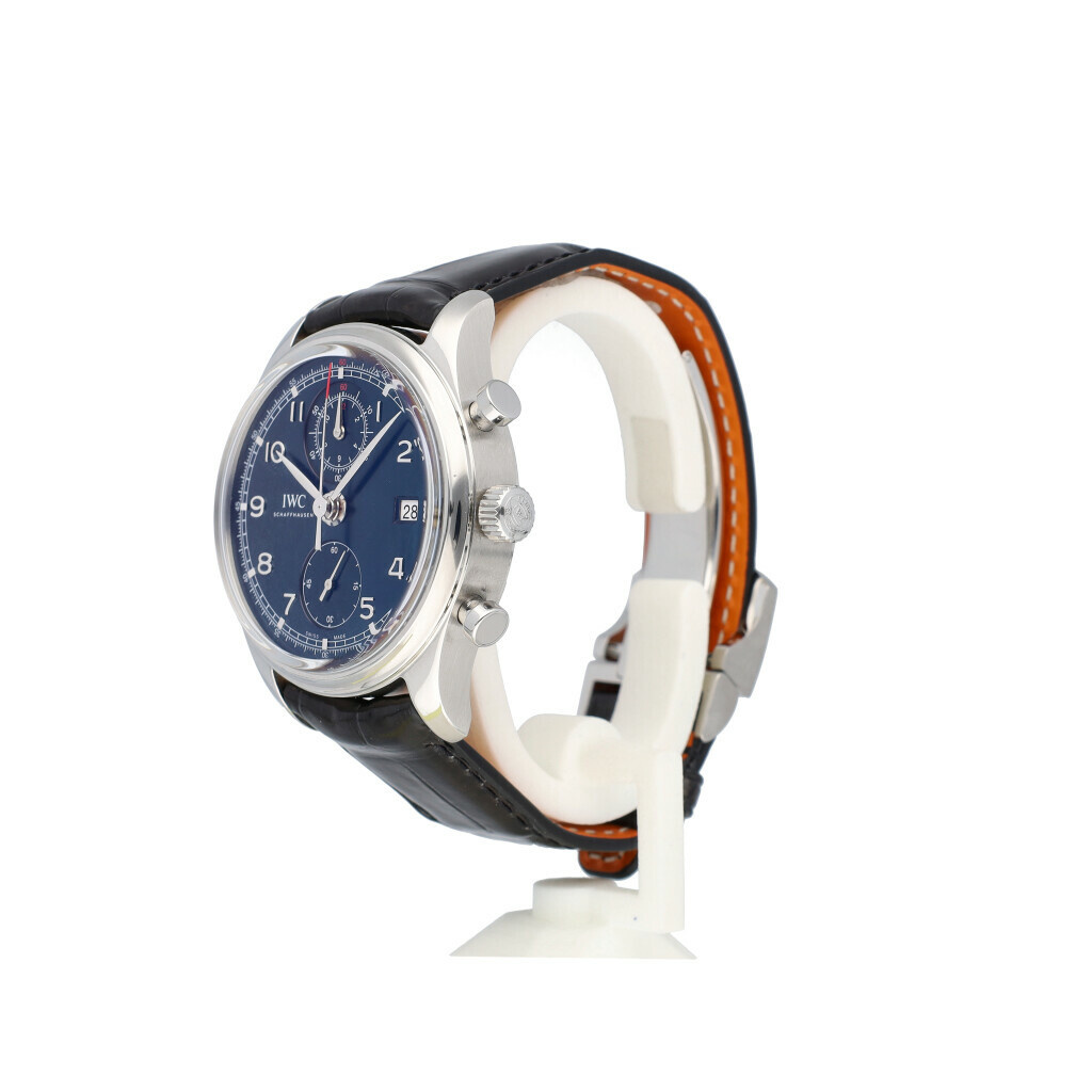 In very good condition IWC Portugieser Chronograph Classic "Laureus Sport for good'' Limited edition in steel with blue dial and brand new IWC alligator Santoni strap. No box and/or papers. Limited edition of 1000 piece worldwide.