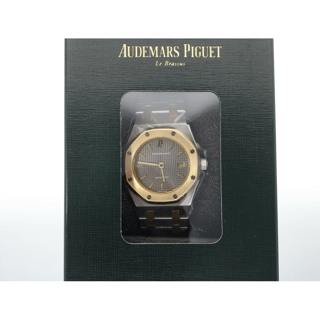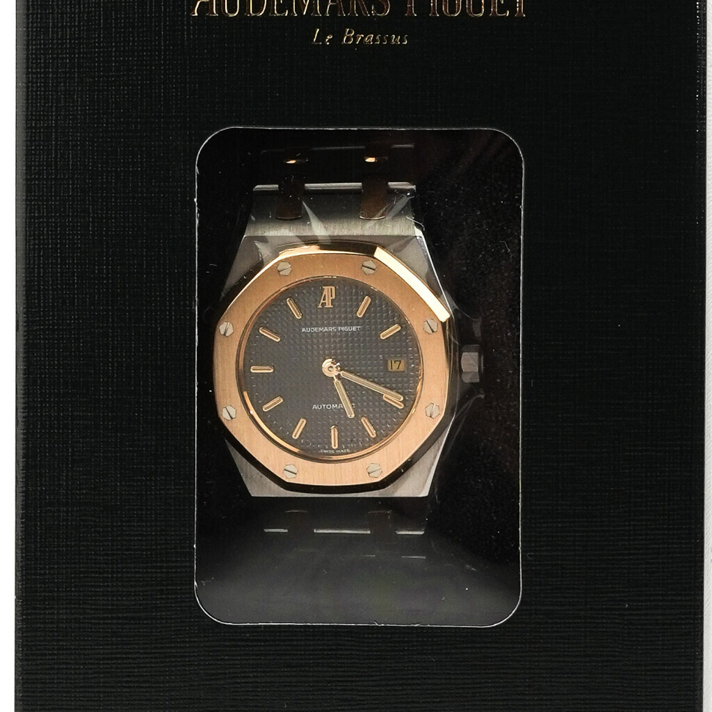 In very good condition Audemars Piguet Lady Royal Oak in steel and yellow gold with grey dial from 1993 complete with box and papers. AP serviced for € 2.145,- and not worn since. Service sealed, AP service papers included.