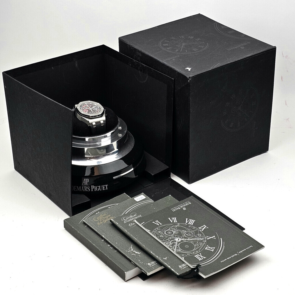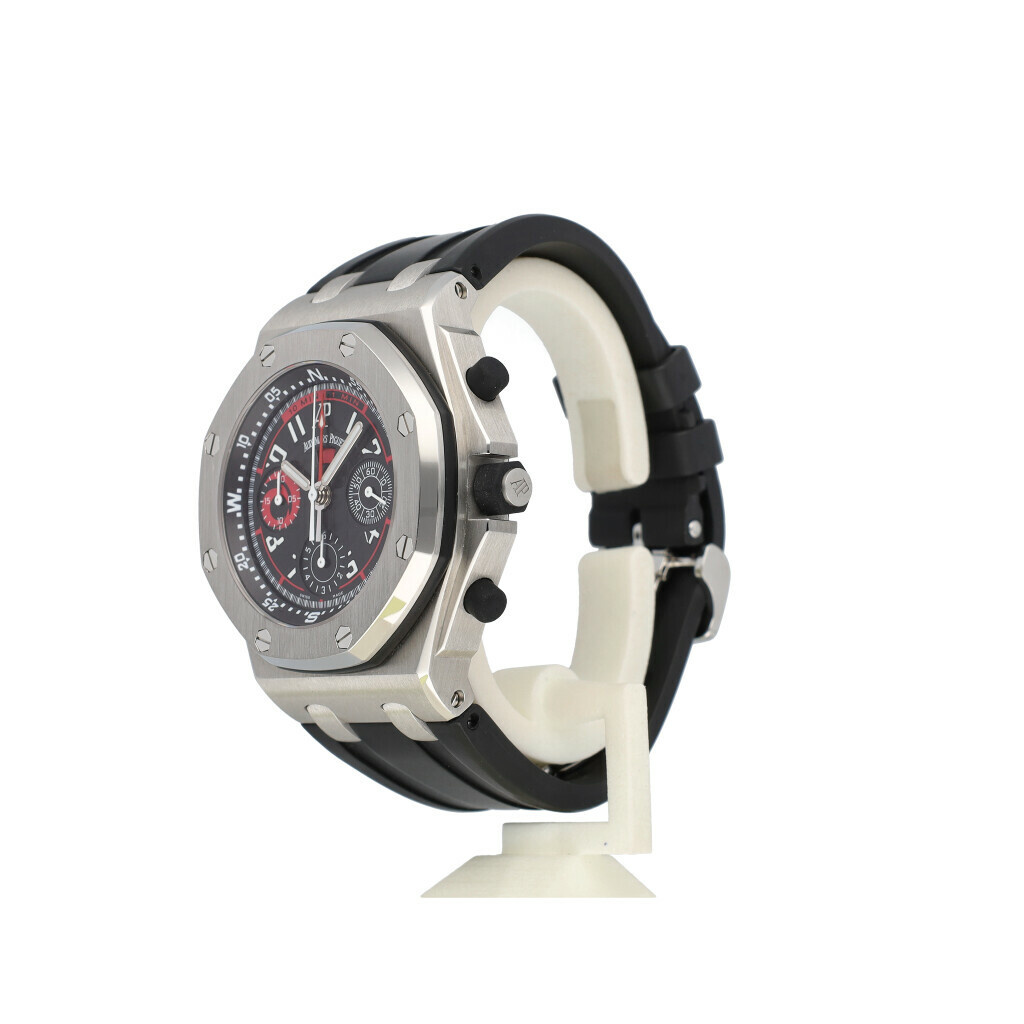 In very good condition Audemars Piguet Royal Oak Offshore Alinghi Polaris in steel with black dial and rubber strap from 2006 complete with box and papers.