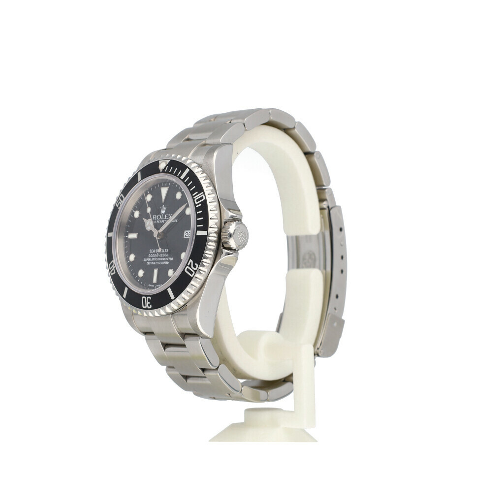 In very good condition Rolex Sea-Dweller 4000 in steel with black dial, black bezel and steel Oyster bracelet from +/- 2004 (F036... serial). No box and/or papers. Rolex serviced 11-2025 and not worn since. Rolex service certificate included.