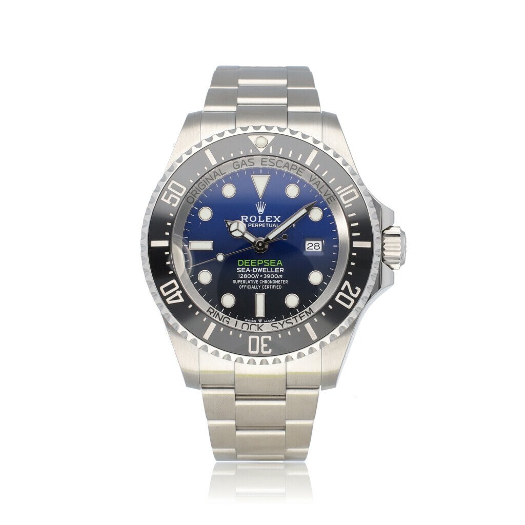 In very good condition Rolex Sea-Dweller Deepsea in steel with blue dial, black cermaic bezel and steel Oyster bracelet from 2021 complete with box and papers.