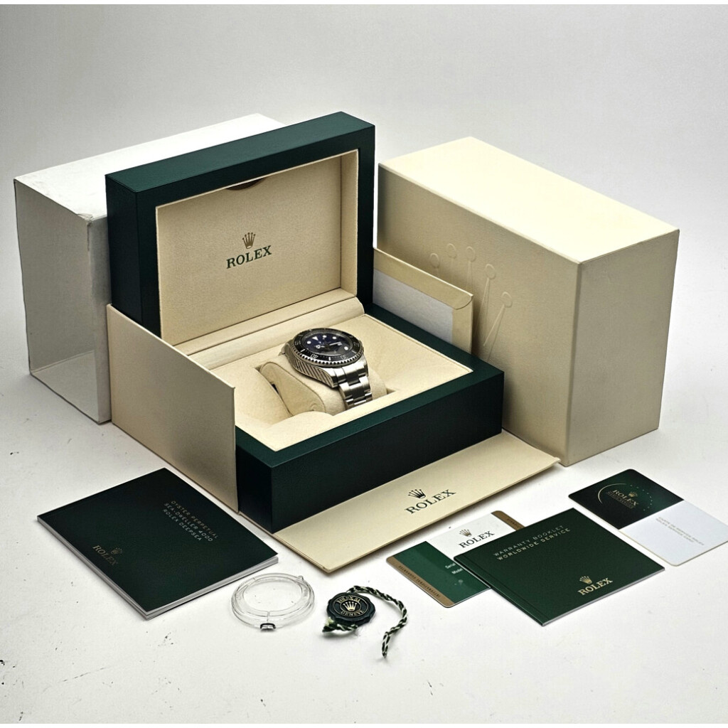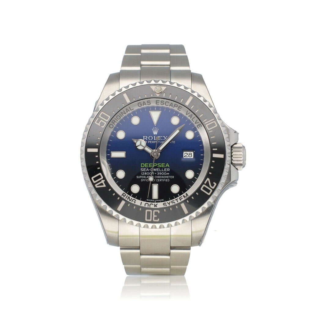 In very good condition Rolex Sea-Dweller Deepsea James Cameron in steel with black and blue dial, black cermaic bezel and steel Oyster bracelet from 2017 complete with box and papers. Rolex serviced 8-2025 and not worn since. Rolex service certificate included.