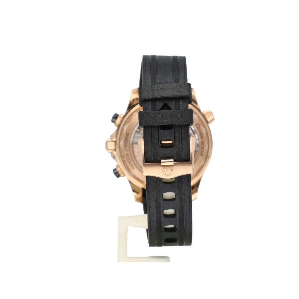 In very good condition Omega Seamaster Diver 300M in rose gold with black dial and rubber strap from 2021 complete with box and papers.