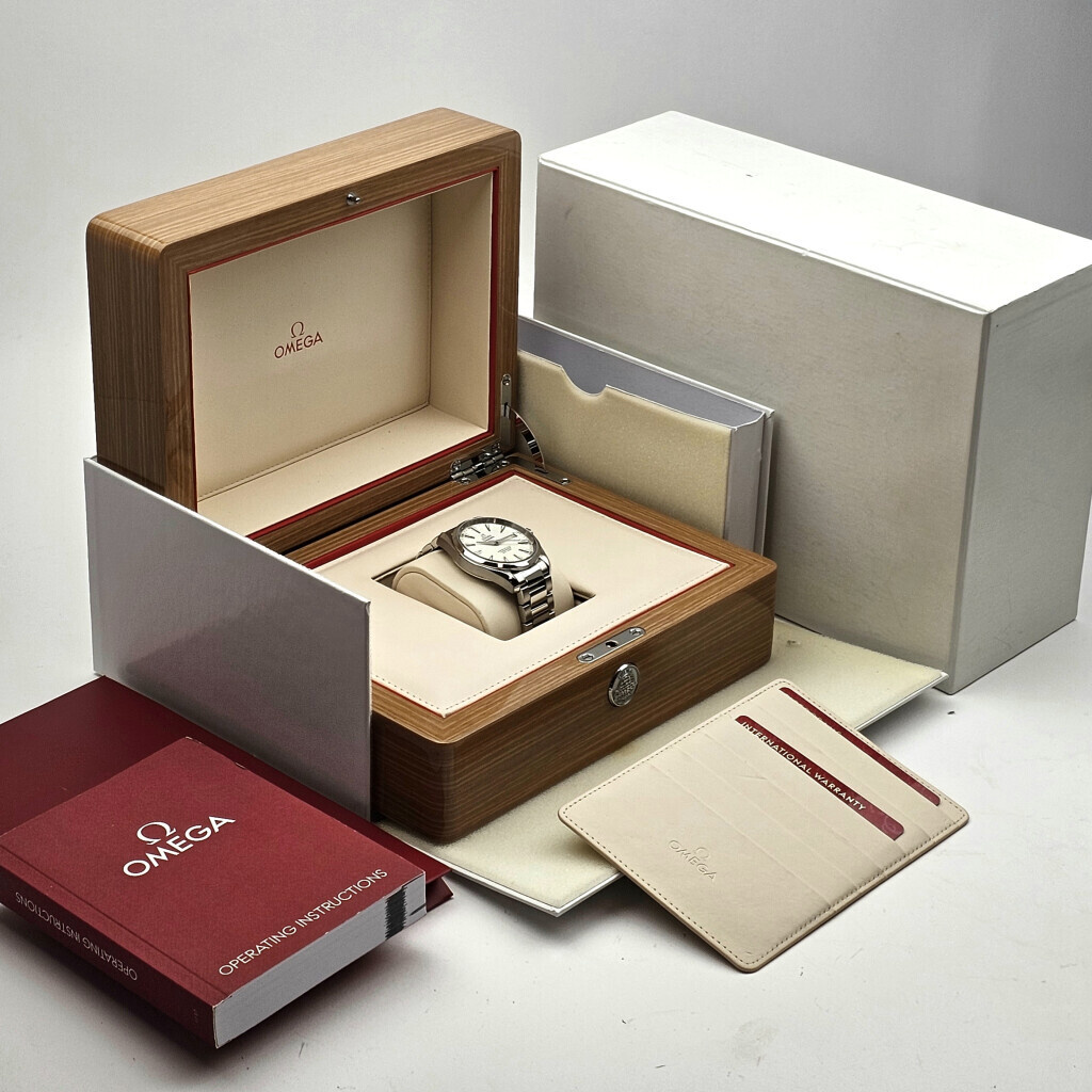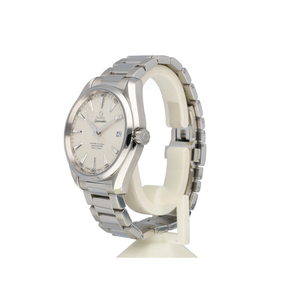 In very good condition Omega Seamaster Aqua Terra in steel with silver dial from 2018 complete with box and papers. Omega serviced 1-2026 and not worn since. Omega service certificate included.