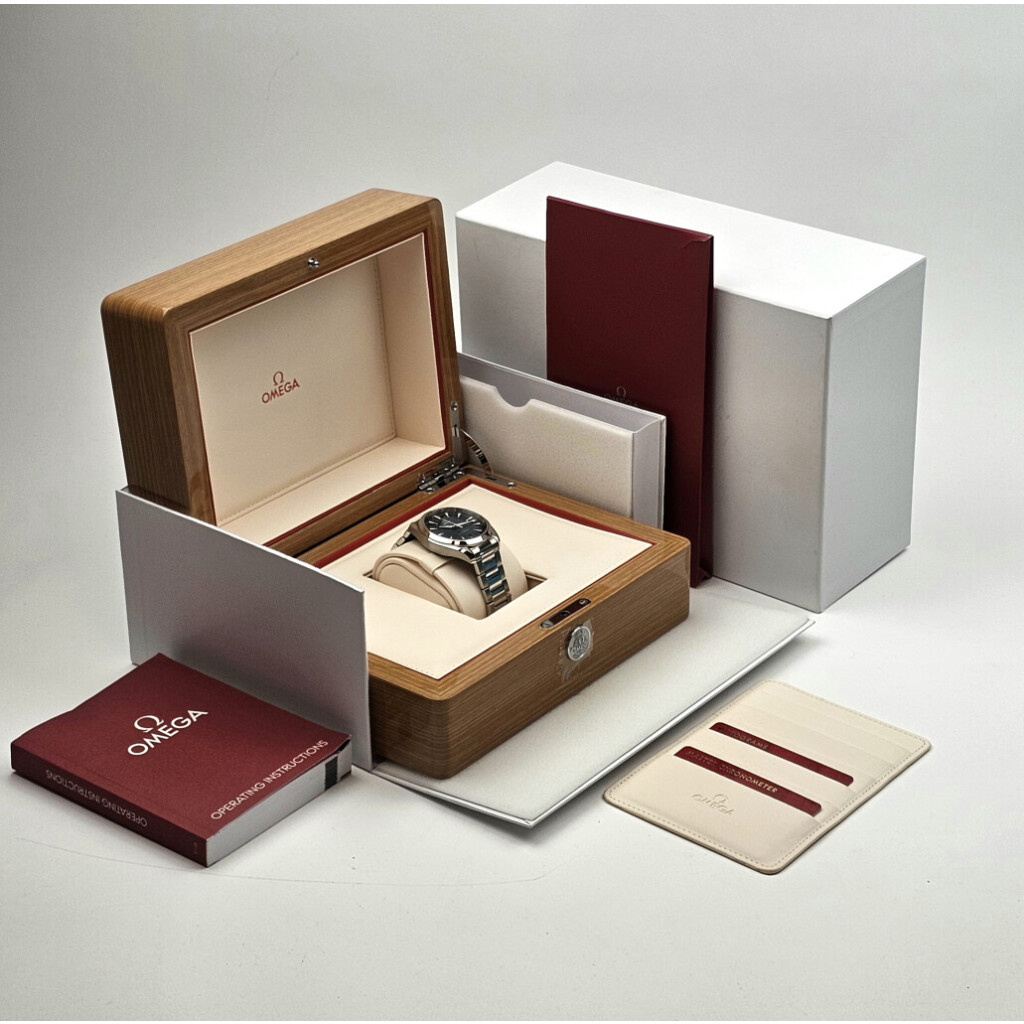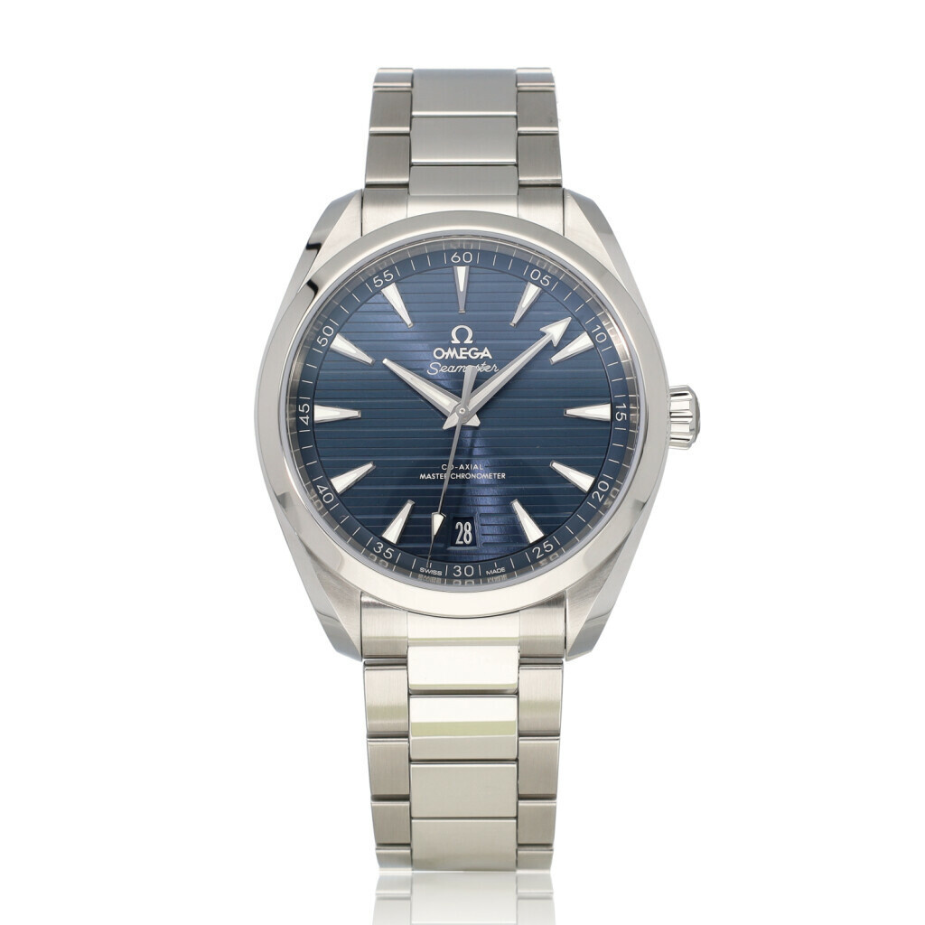 In very good condition, Omega Seamaster Aqua Terra 150M Co-Axial Master Chronometer in steel with blue dial and steel bracelet from 2024 complete with box + papers.