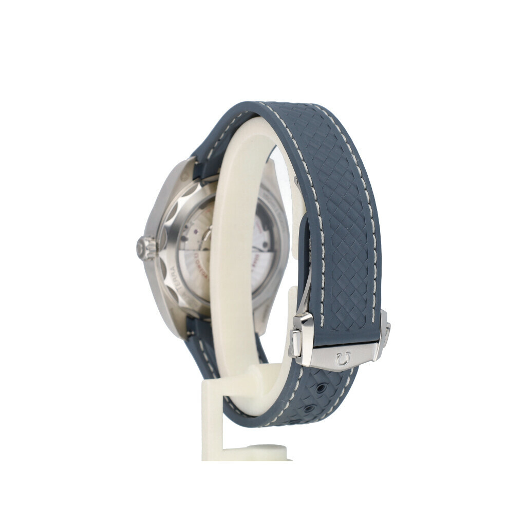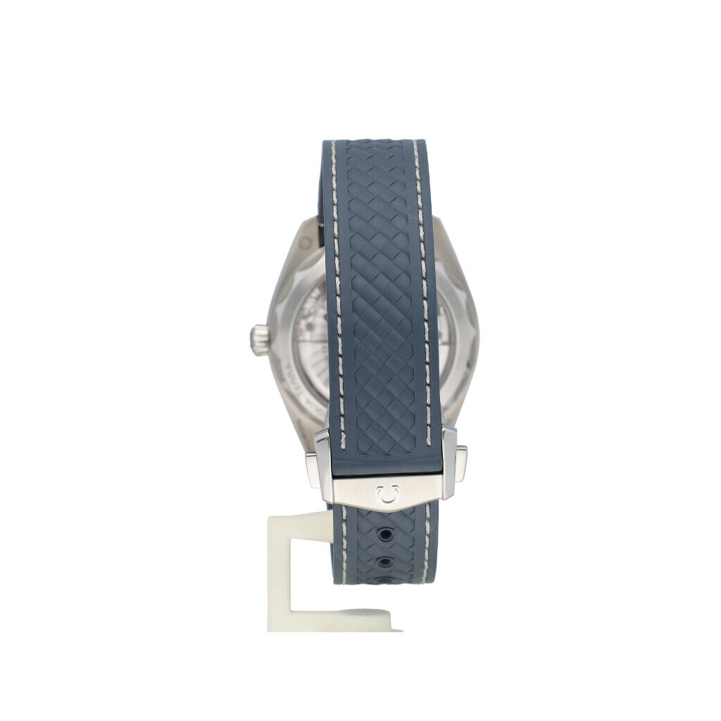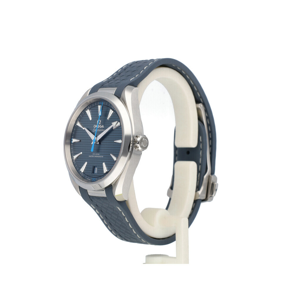 In very good condition Omega Seamaster Aqua Terra in steel with blue dial and rubber strap from 2025 complete with box and papers.