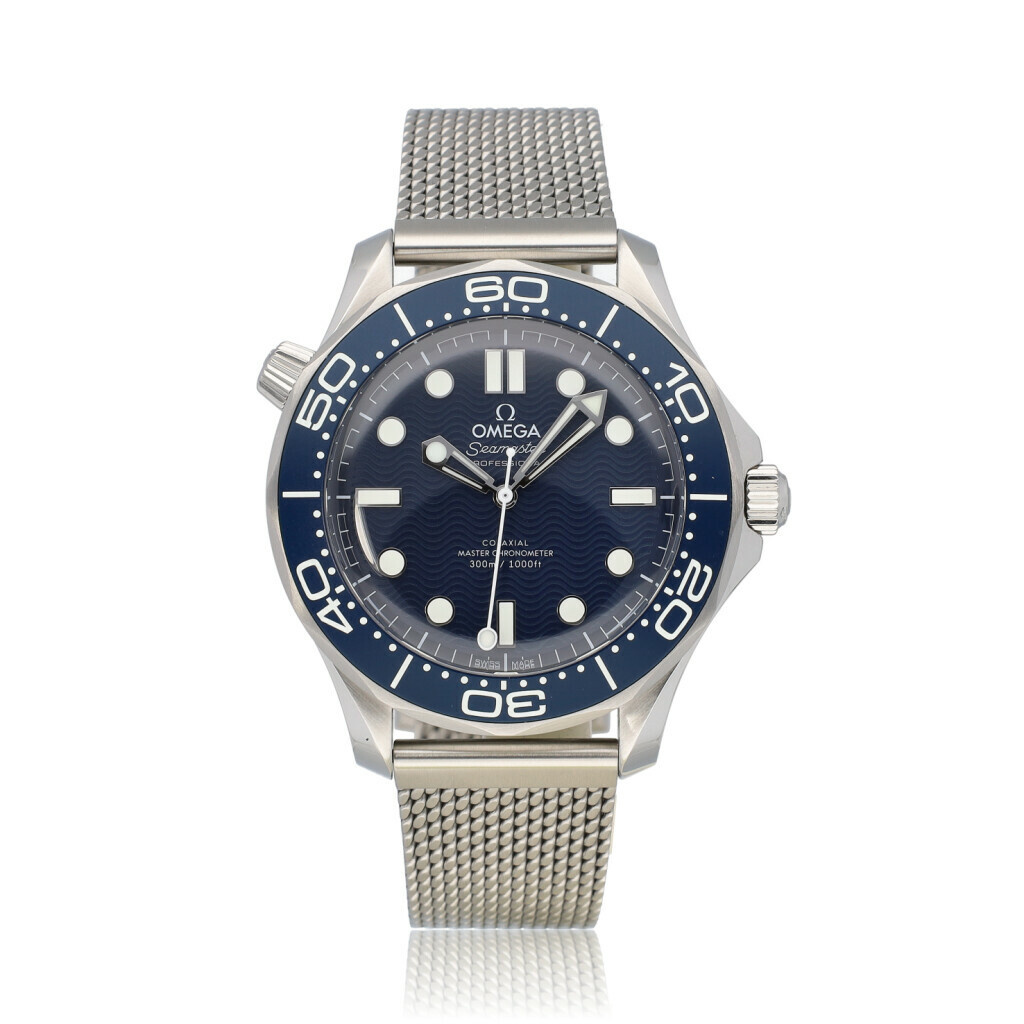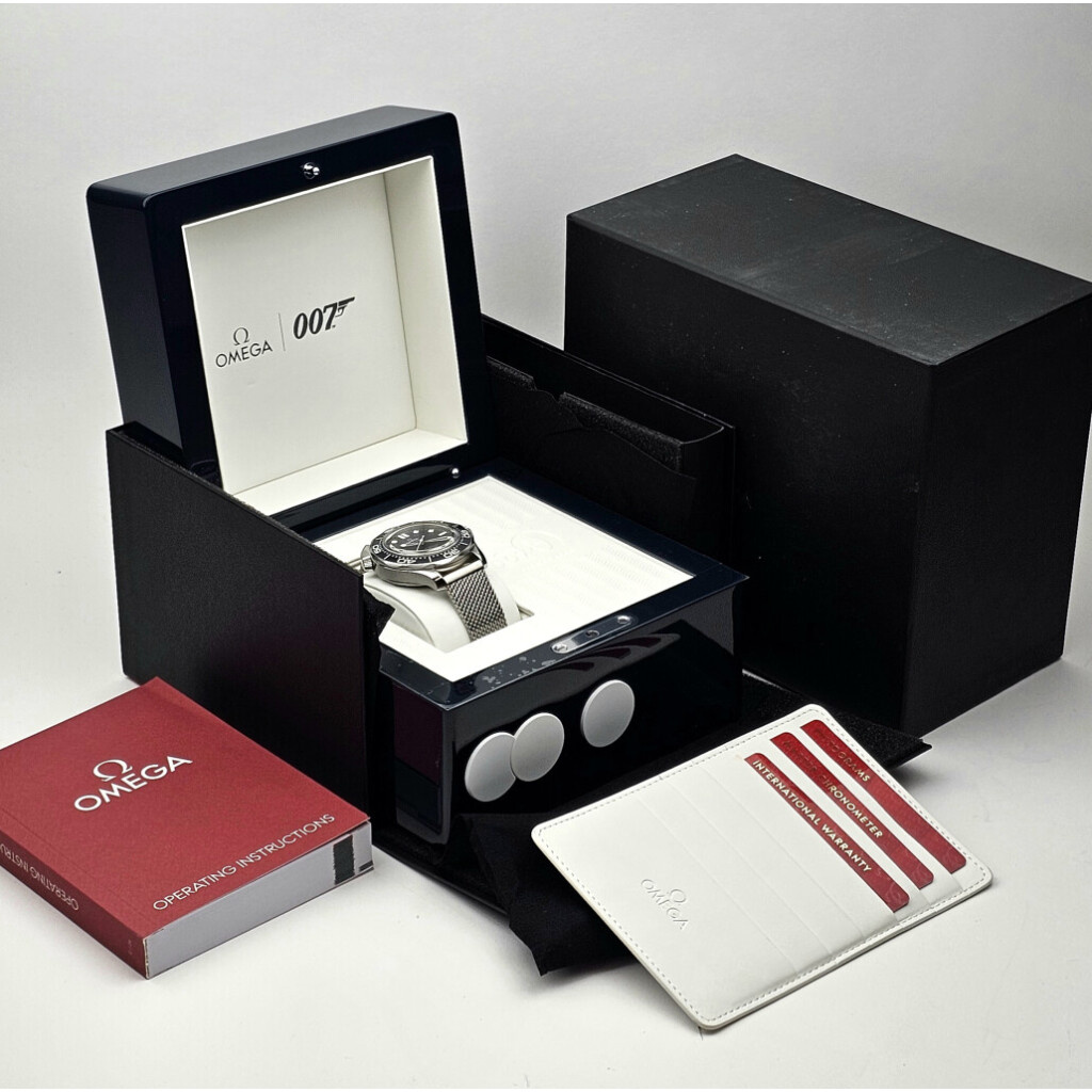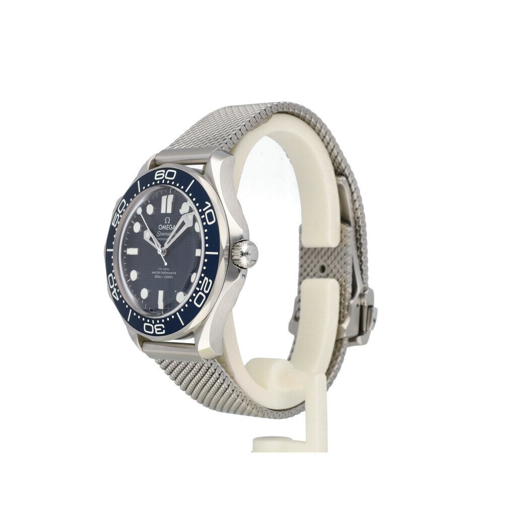 In very good condition Omega Diver 300M Co-Axial Master Chronometer James Bond 60th Anniversary in steel with blue dial from 2025 complete with box and papers.