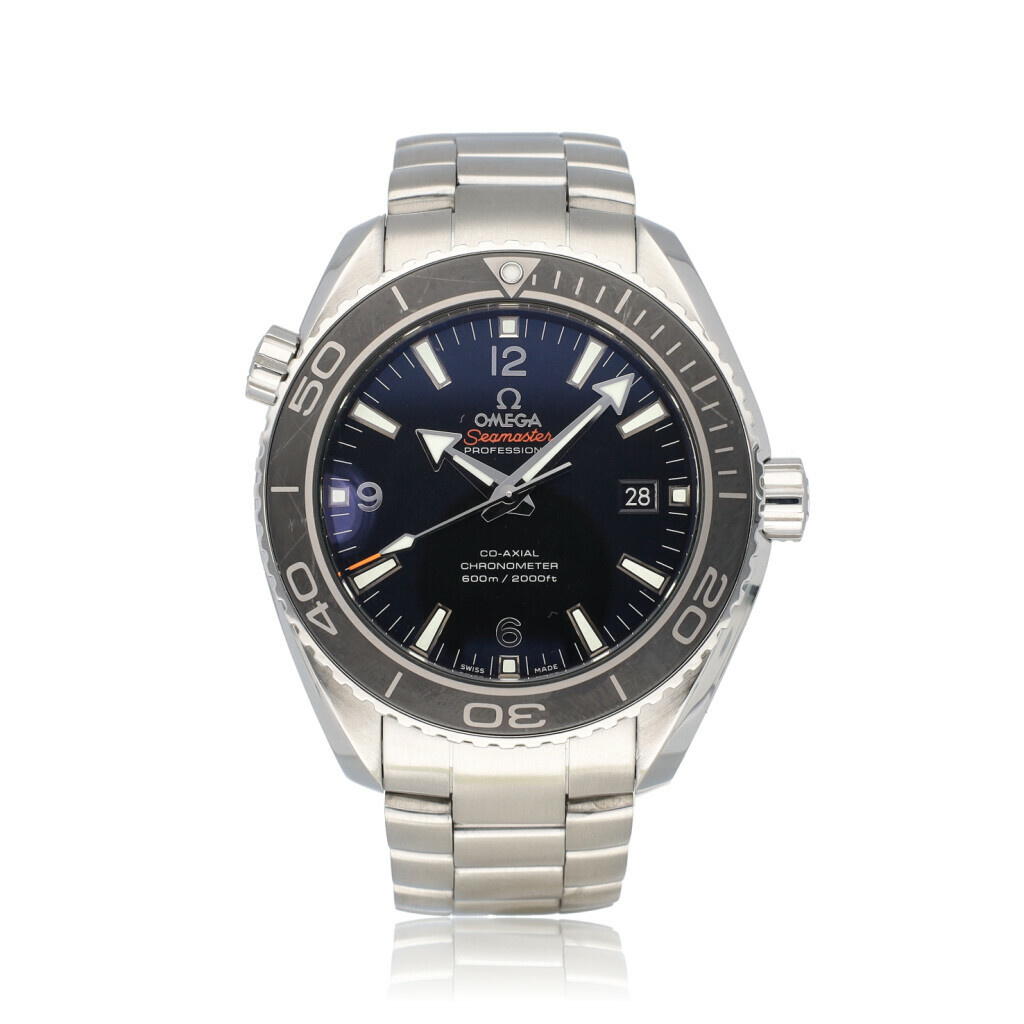 In very good condition Omega Seamaster 46 mm Planet Ocean 600M in steel from 2016 complete with box and papers.