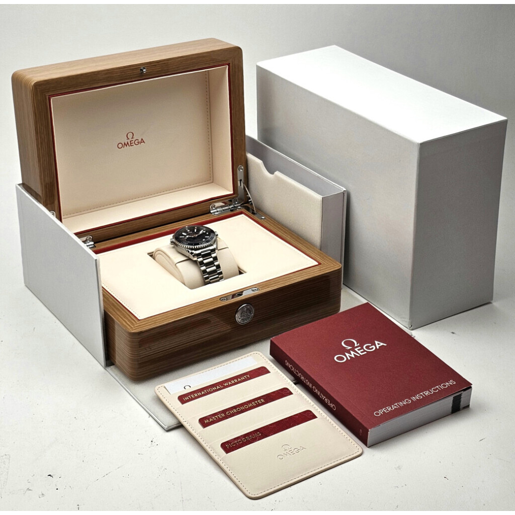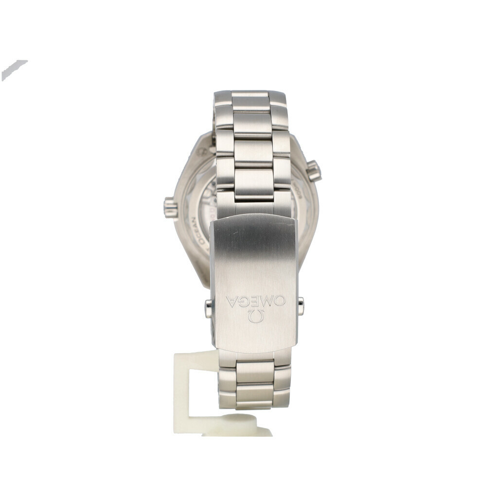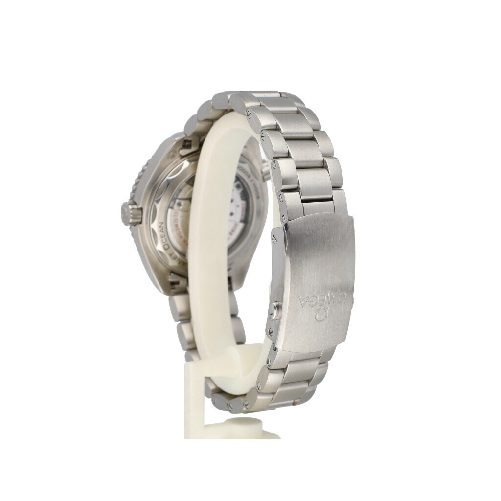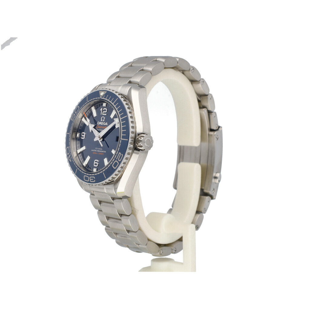 In very good condition Omega Seamaster Planet Ocean 600M Co-Axial Master Chronometer in steel with blue dial, blue ceramic bezel and steel bracelet from 2022 complete with box and papers.