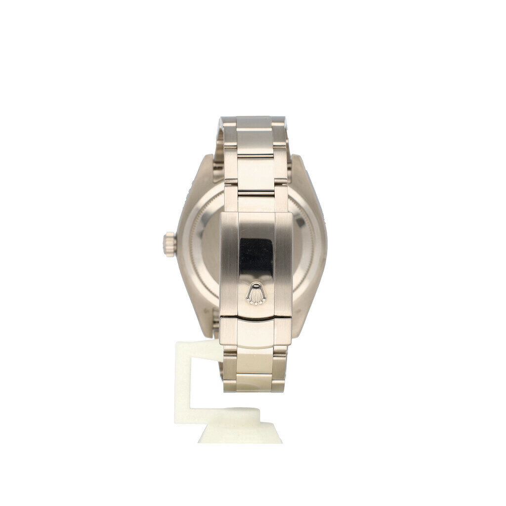 In very good condition Rolex Sky-Dweller in white gold with ivory roman dial, white gold fluted bezel and white gold Oyster bracelet from 2016 complete with box and papers. Unfortunately the film of the certificate came of, numbers of foil and certificat match.