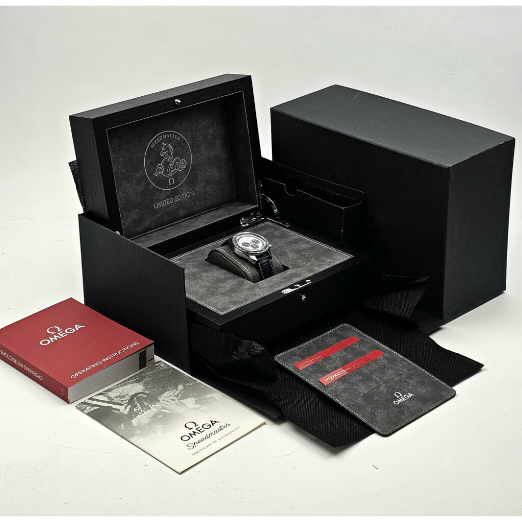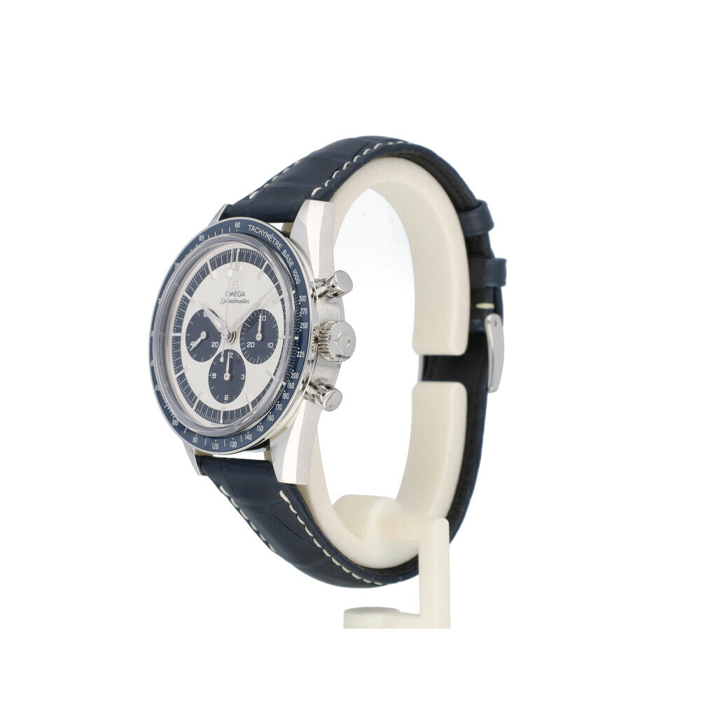 In very good condition Omega Speedmaster Professional Moonwatch in steel with leather strap from 2016 complete with box and papers.