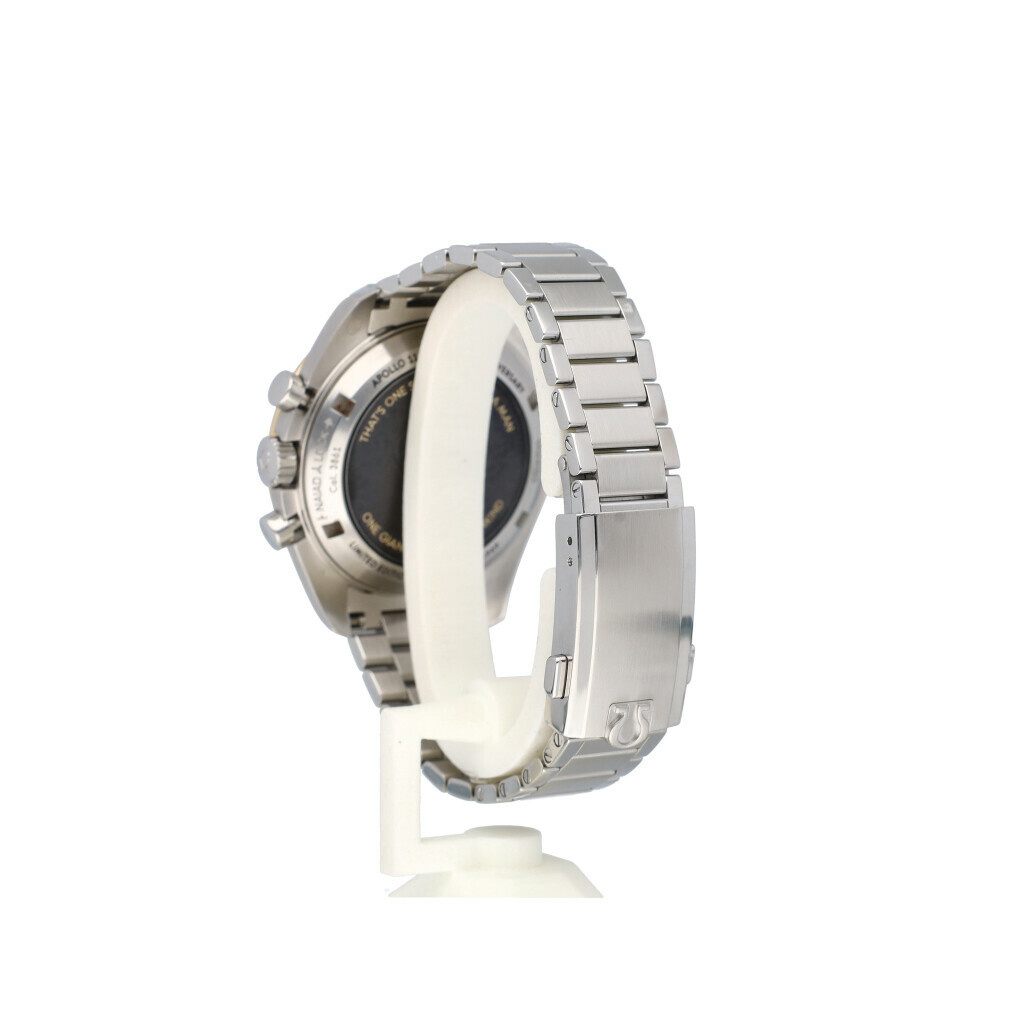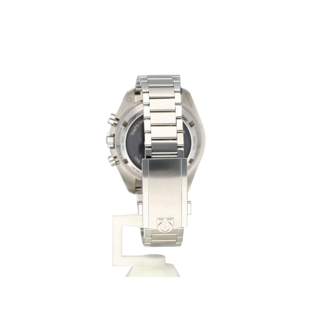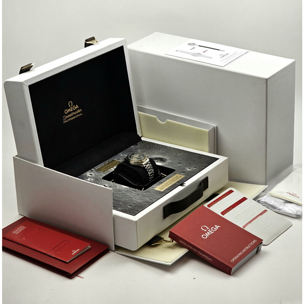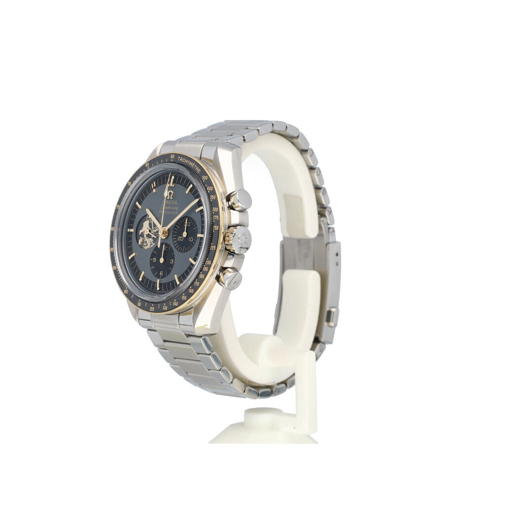 In very good condition Omega Speedmaster Professional Moonwatch Apollo 11 50th Anniversary Chronograph in steel with grey and black dial and steel Omega bracelet from 2020 complete with box and papers. Omega serviced 4-2022 adn hardly worn since. Omea service certificate included.