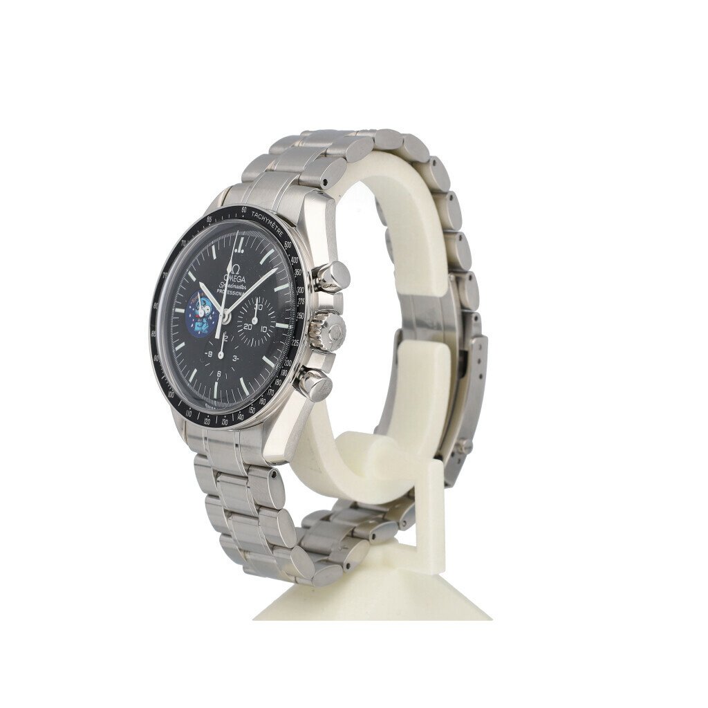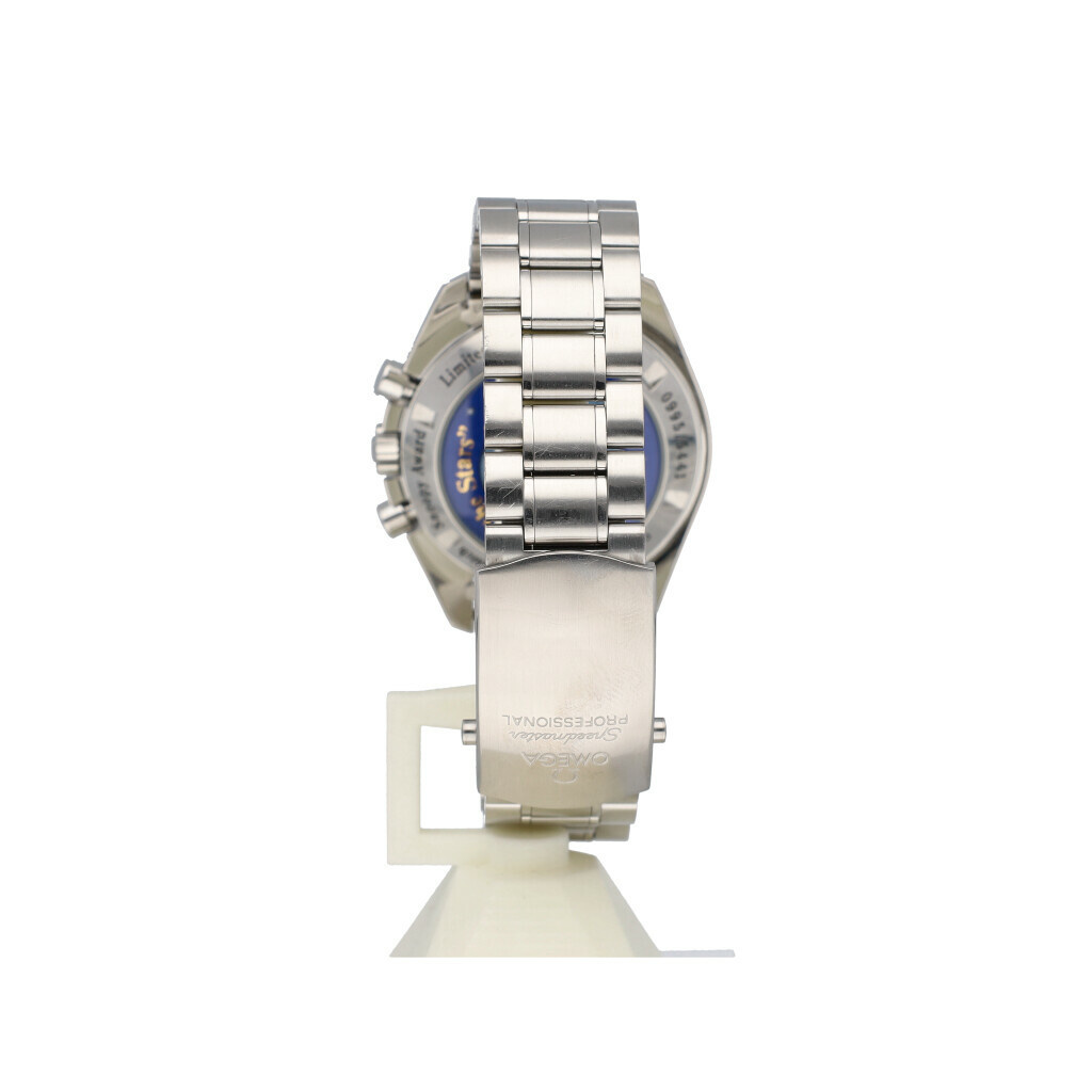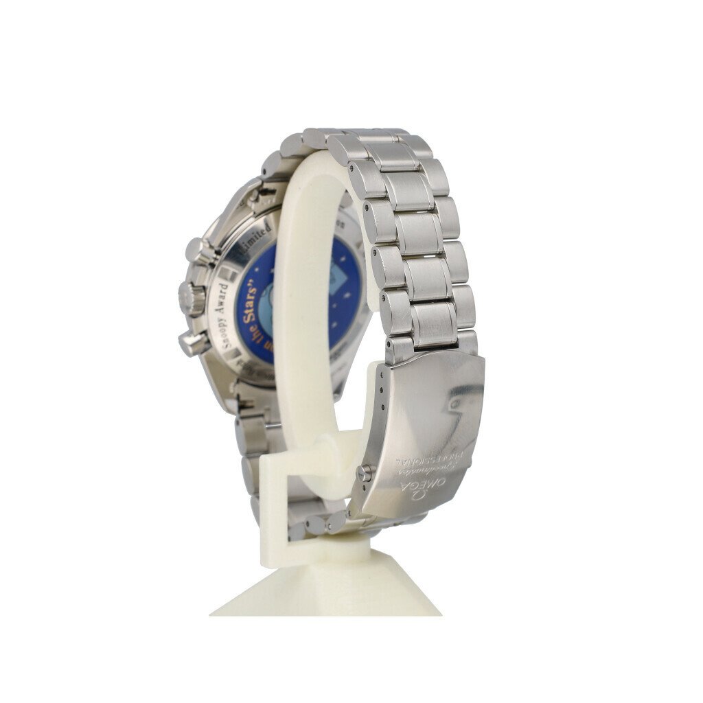 In very good condition Omega Moonwatch Professional "Snoopy" in steel with black dial complete with box and papers. No date filled in on certificate.