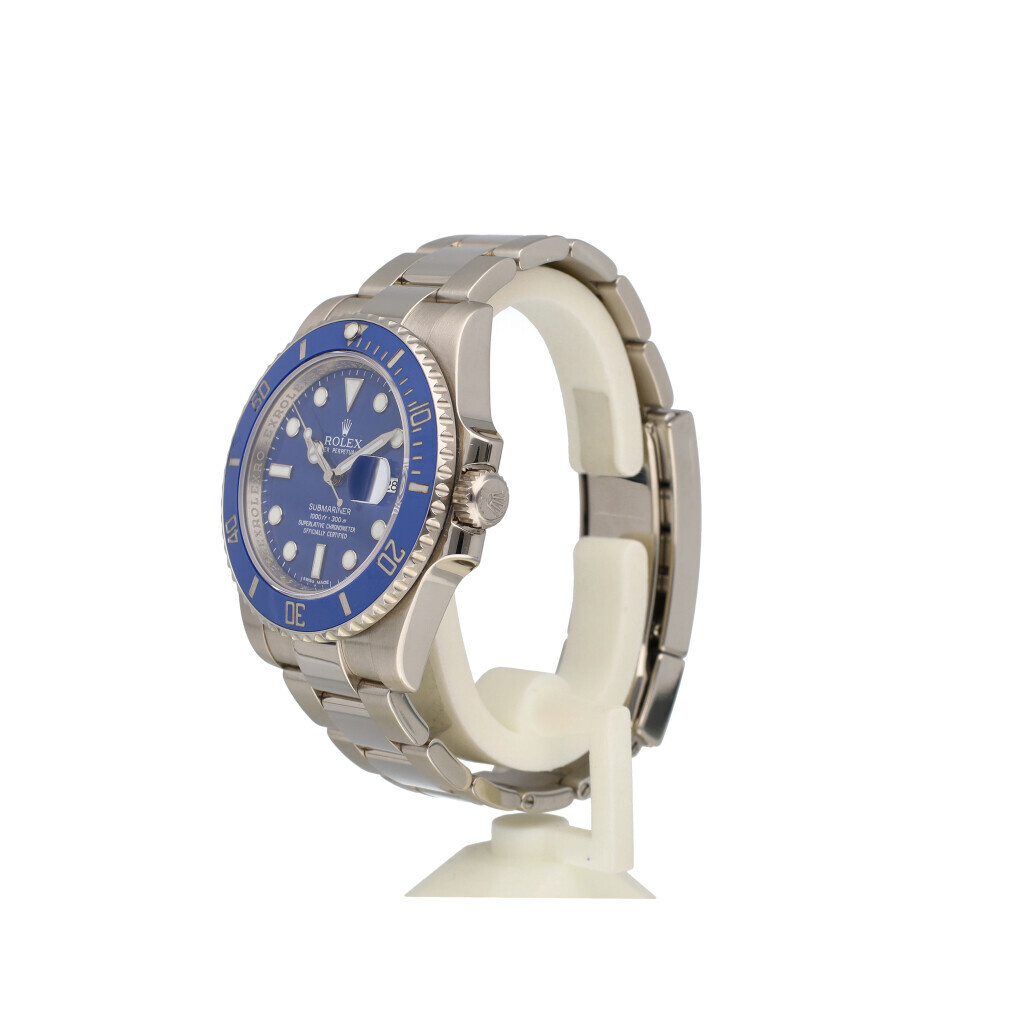 In very good condition Rolex Submariner Date in whitegold with blue dial complete with box, no papers. Random serial number so from after 2011.
