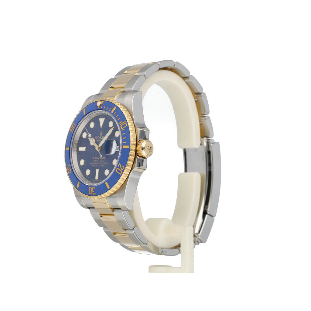 In very good condition Rolex Submariner Date in steel and yellow gold with blue sunburst dial, blue ceramic bezel and steel and yellow gold Oyster bracelet from 2019 complete with box and papers.