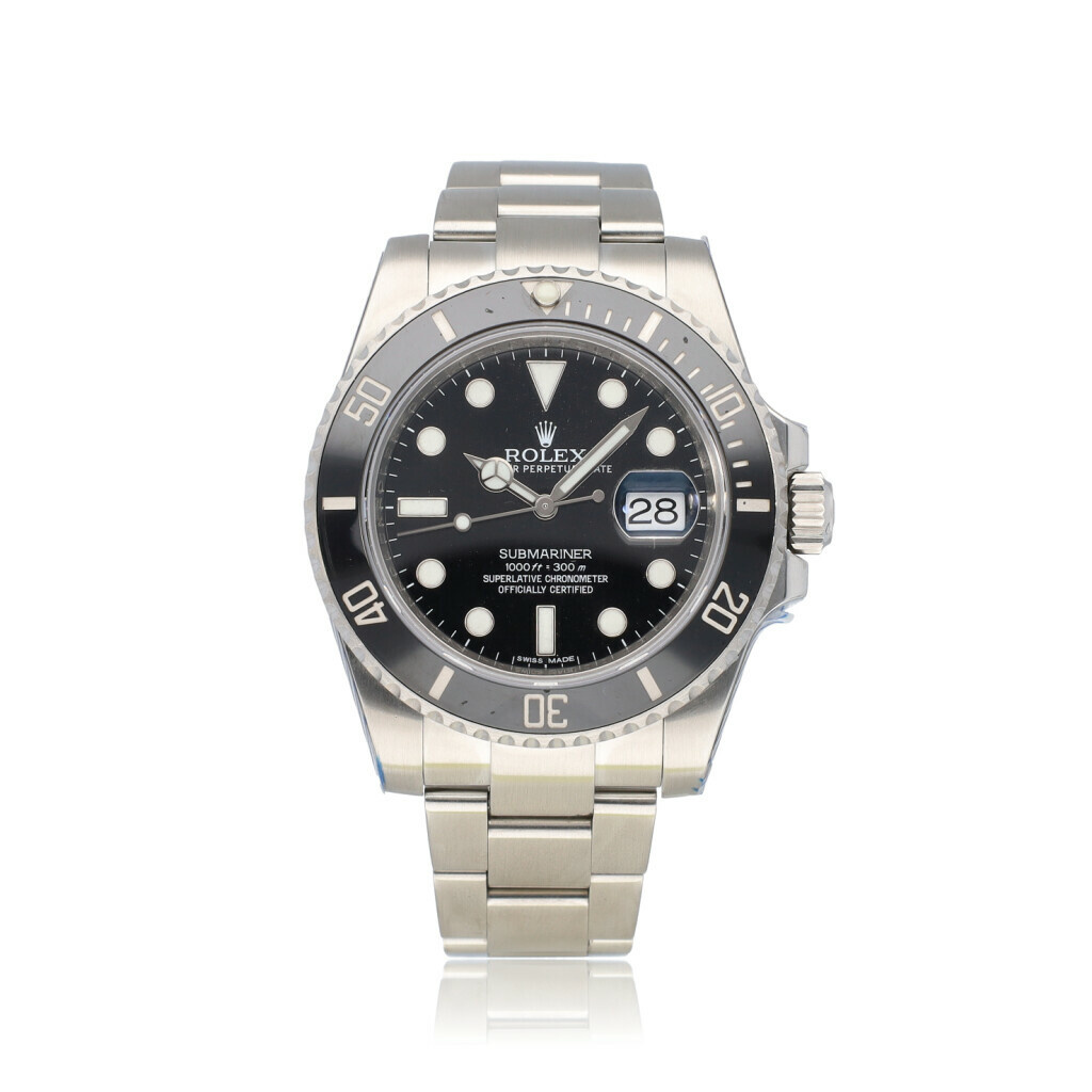 In very good condition Rolex Submariner Date in steel with black dial, ceramic bezel and steel Oyster bracelet complete with box, no papers. Rolex serviced 6-2025 and not worn since. Rolex service certificate included.