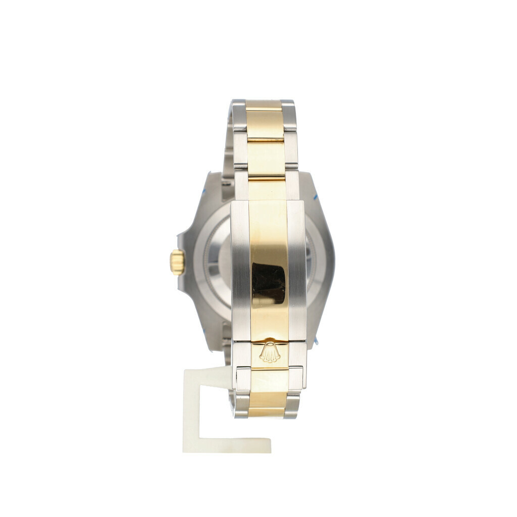 In very good condition Rolex Submariner in steel and yellow gold with black dial, black ceramic bezel and steel and yellow gold Oyster bracelet from 2010 complete with box and papers.