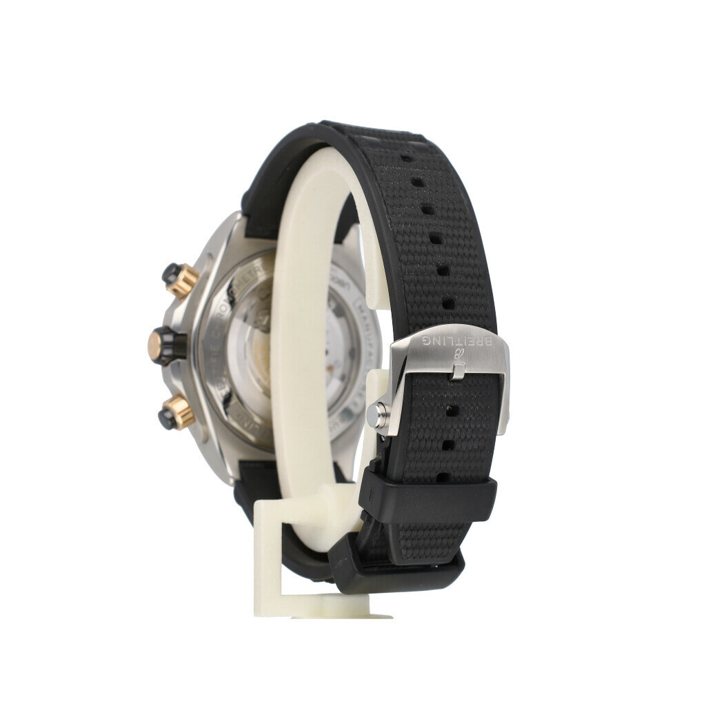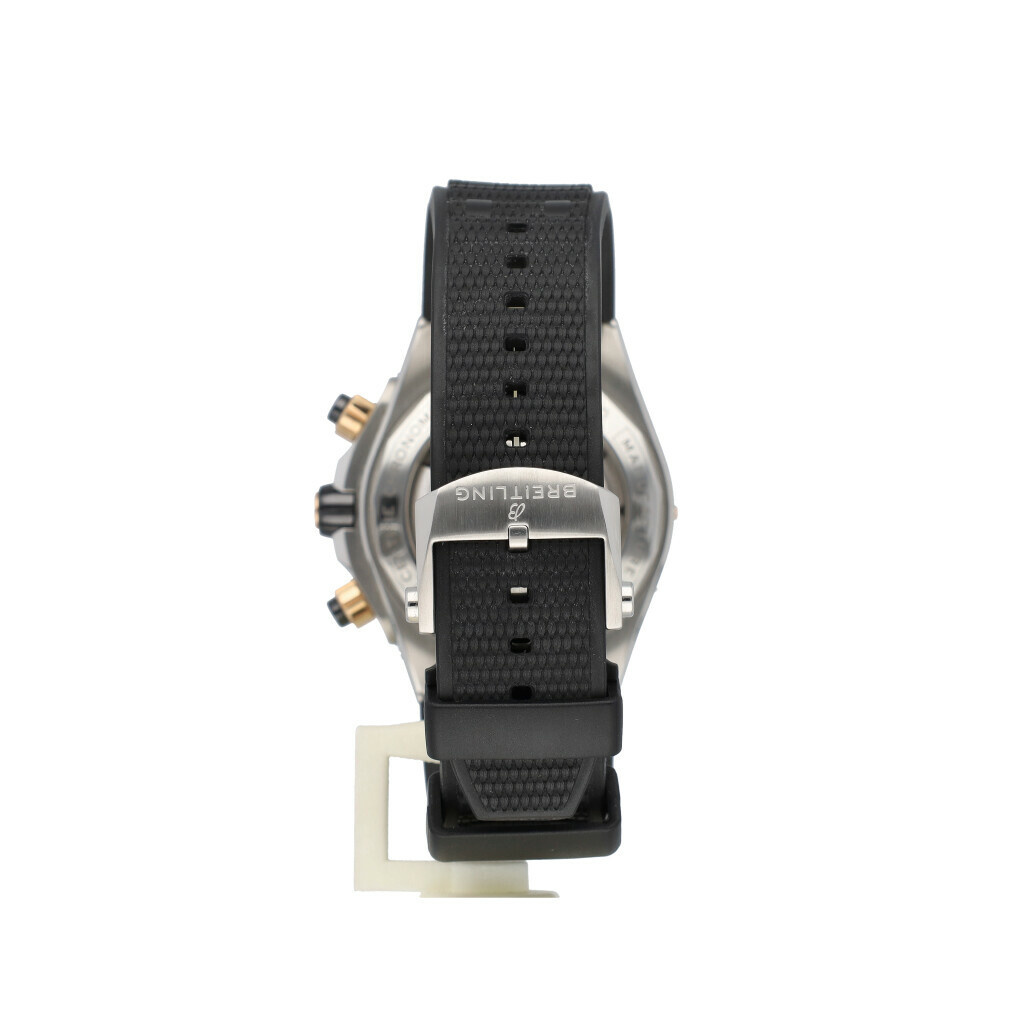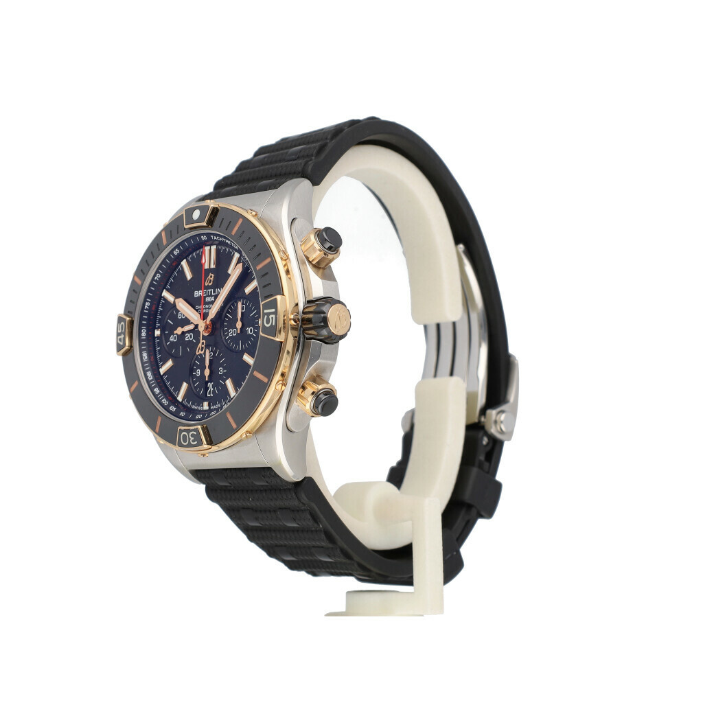 In very good condition Breitling Super Chronomat B01 in steel and rose gold with black dial and rubber strap from 2023 complete with box and papers.