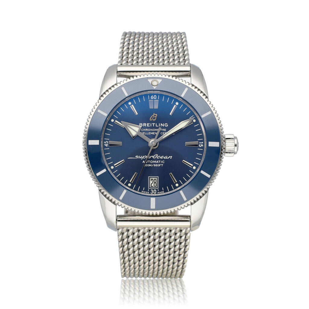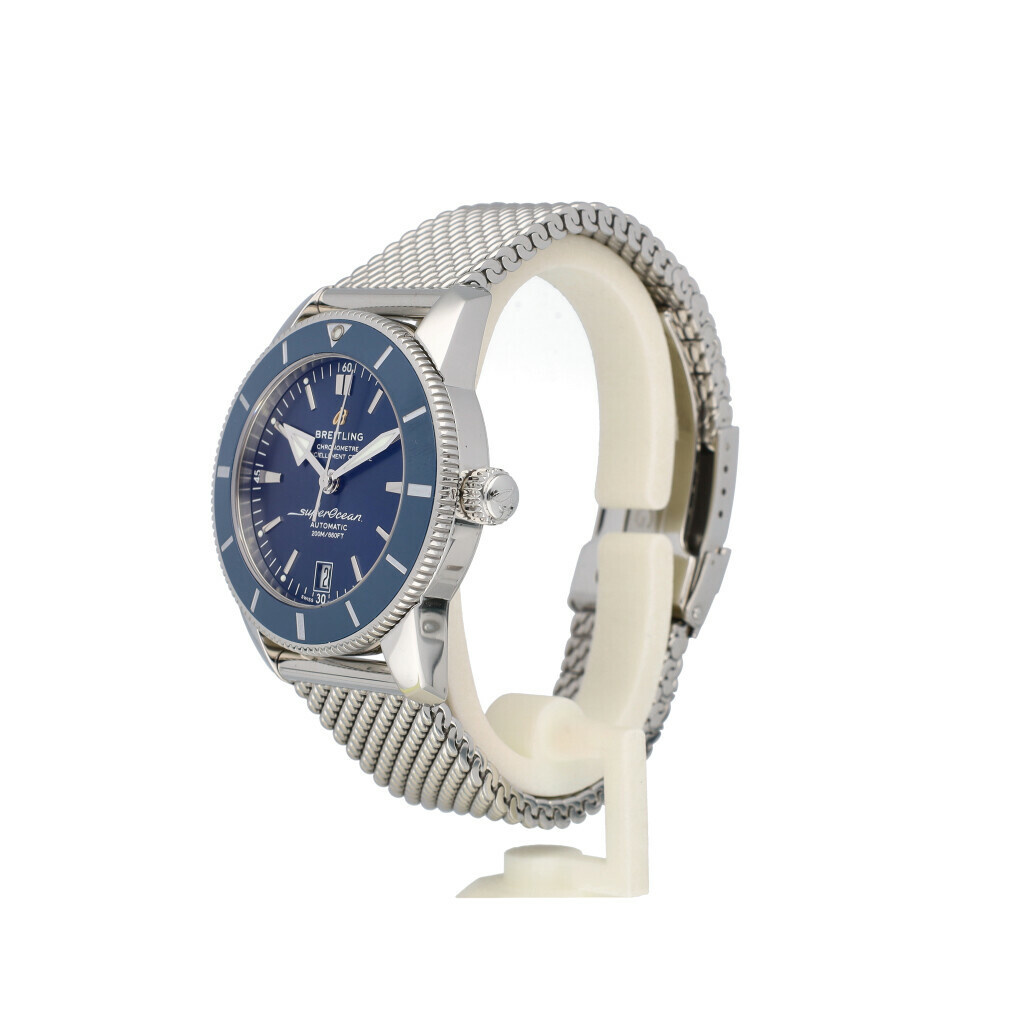 In very good condition Breitling Superocean Heritage II in steel with blue dial and steel bracelet from 2019 complete with box and papers. Breitling serviced 3-2026 and not worn since. Breitling service certificate included.