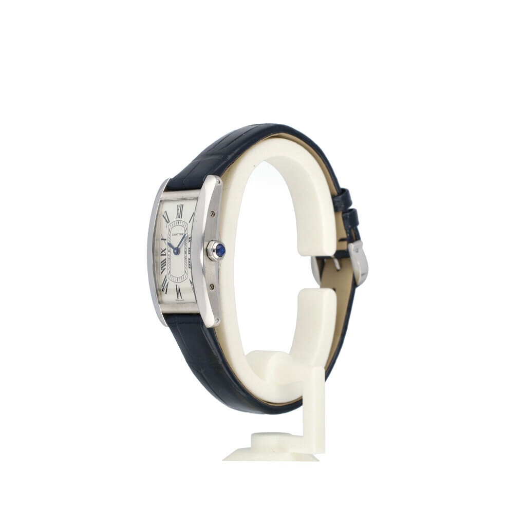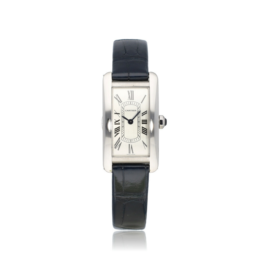 In very good condition Cartier Tank Américaine in steel with silver roman dial, brand new Cartier strap from 2024 complete with box and papers