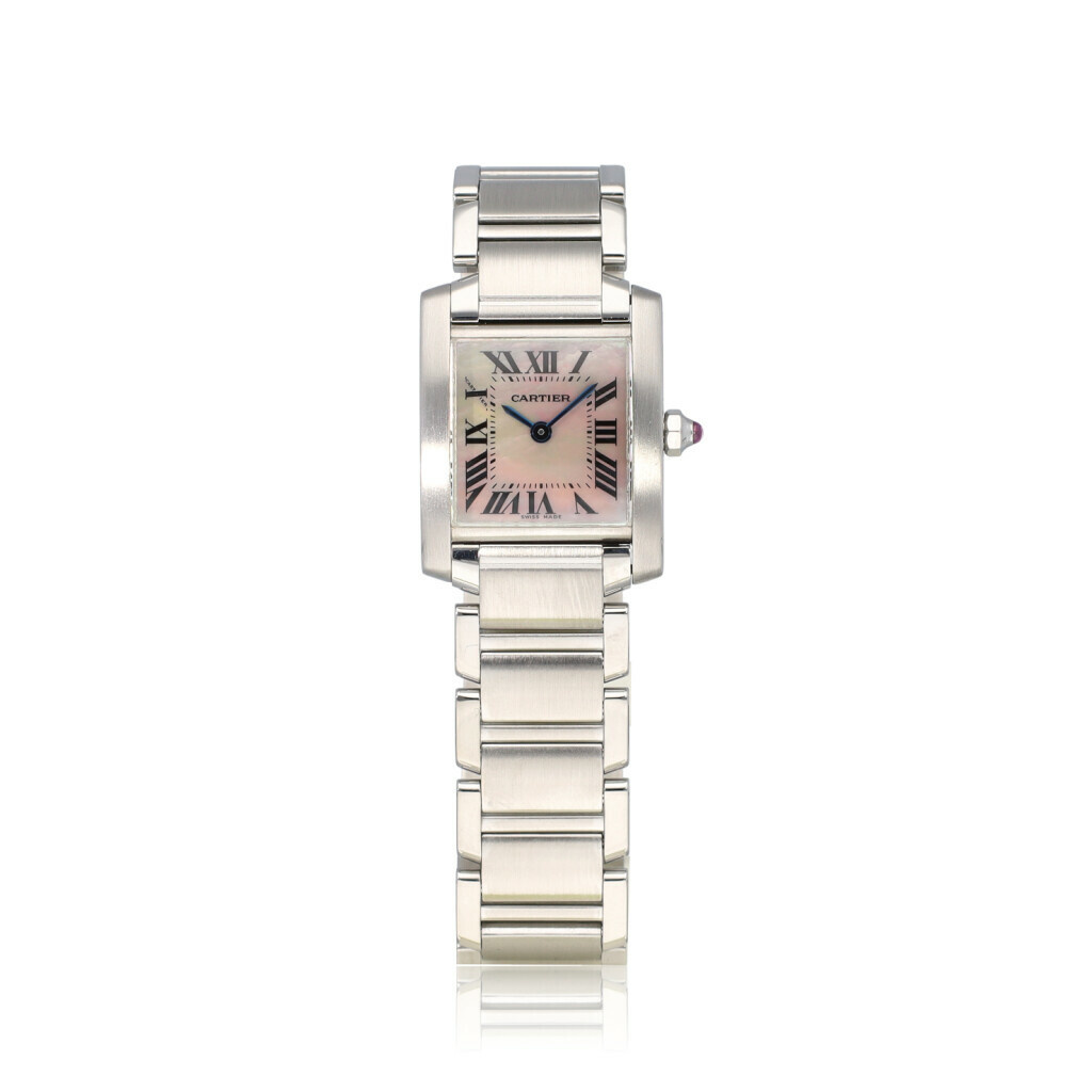 In very good condition Cartier Tank Francaise in steel with MOP / mother of pearl roman dial. No box and/or papers.