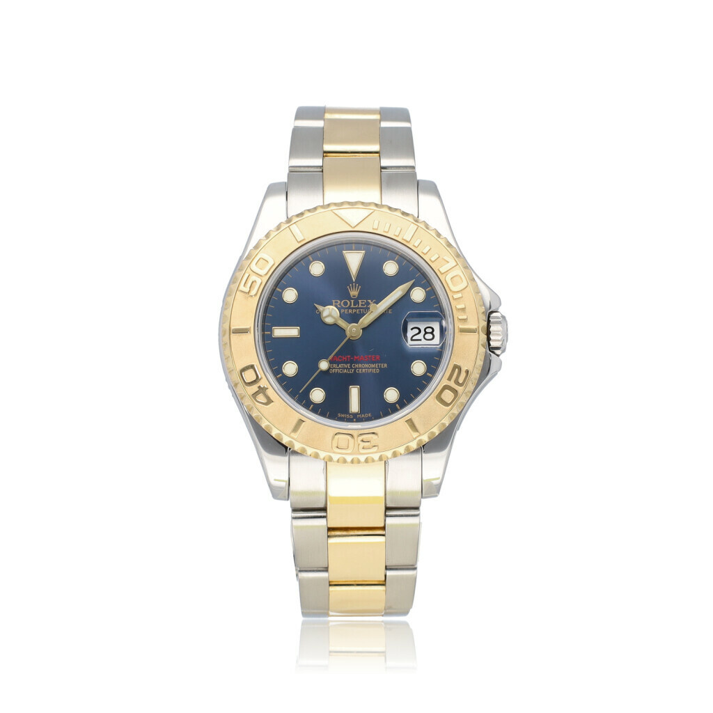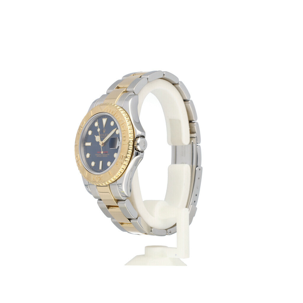 In very good condition Rolex Yachtmaster 35mm in steel - yellow gold with blue dial and steel and yellow gold Oyster bracelet from 1999 complete with box and papers.