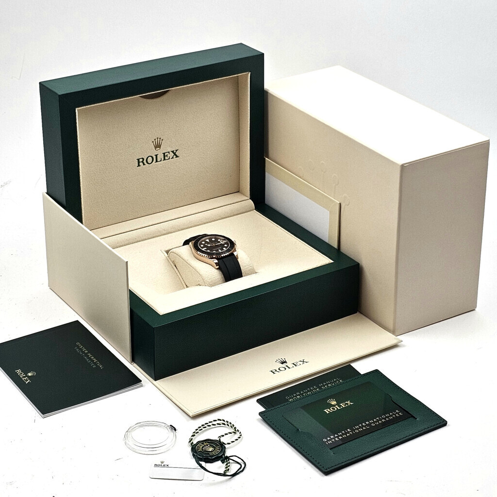 In very good condition Rolex Yacht-Master 37 in rose gold with rubber strap from 2023 complete with box and papers.