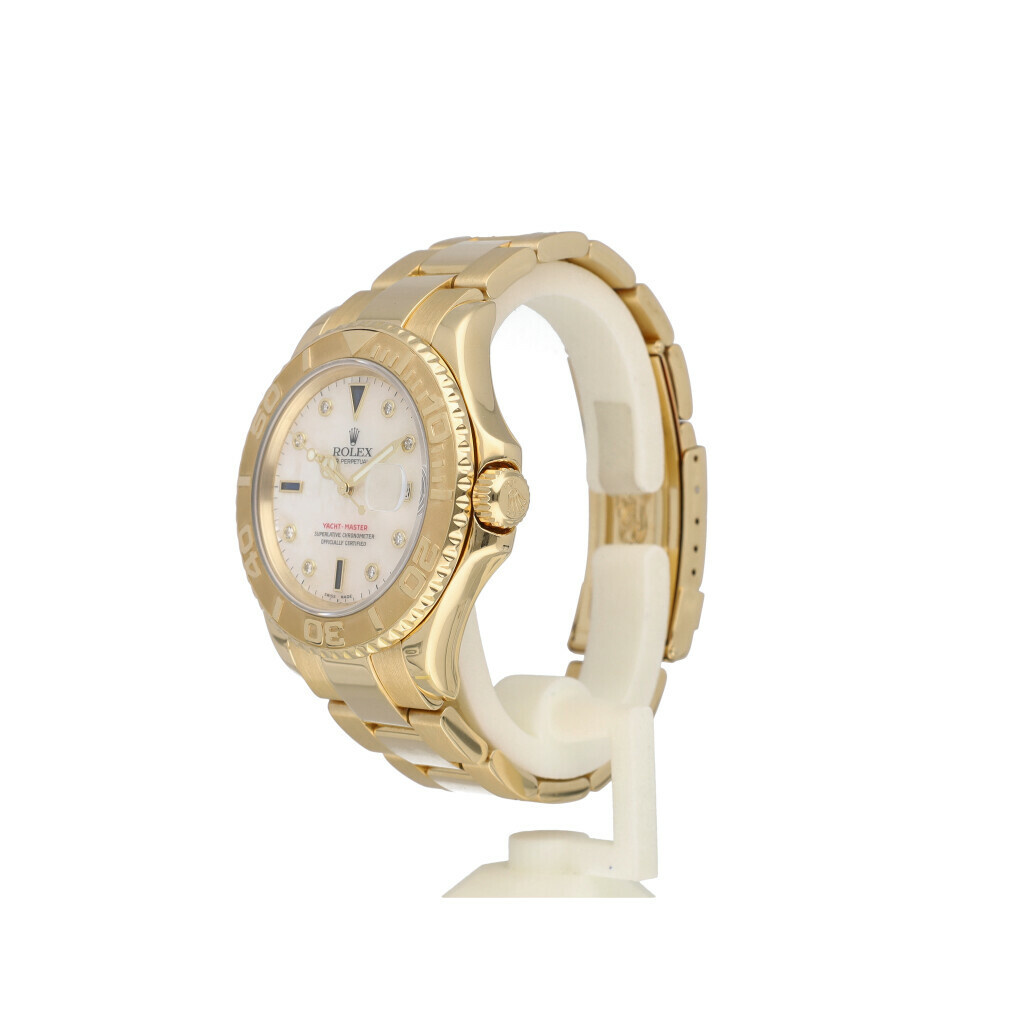 In very good condition Rolex Yacht-Master in yellow gold with factory mother of pearl diamond and sapphire dial from +/- 2000 (P515... serial). No box and/or papers.