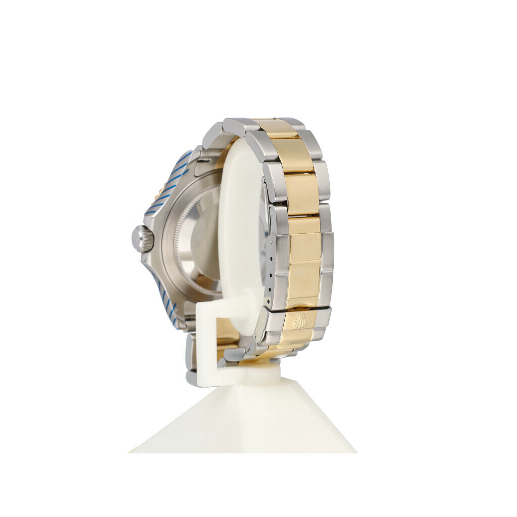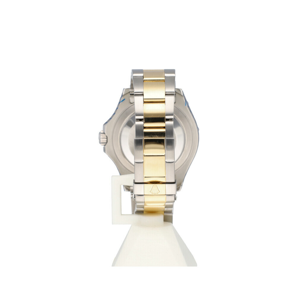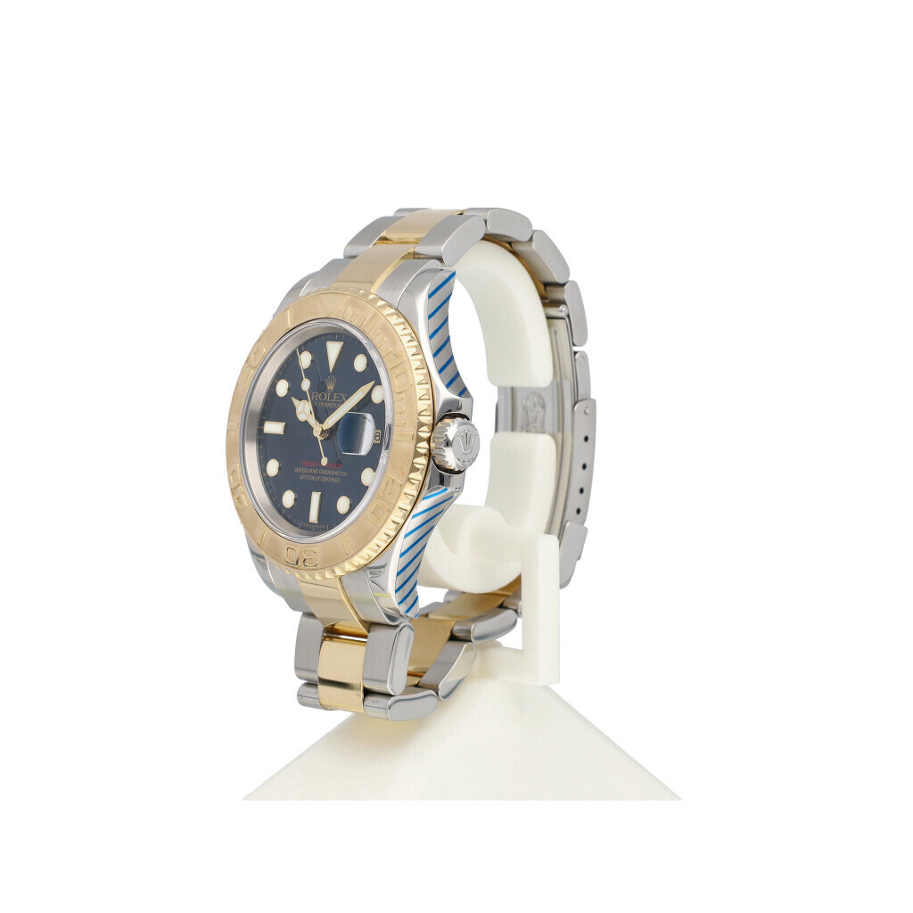 In very good condition Rolex Yacht-Master in steel and yellow gold with blue dial, yellow gold bezel and steel and yellow gold Oyster bracelet from +/- 2005 (D993... serial). No box and/or papers. Rolex serviced 7-2025 and not worn since. Rolex service certificate included.