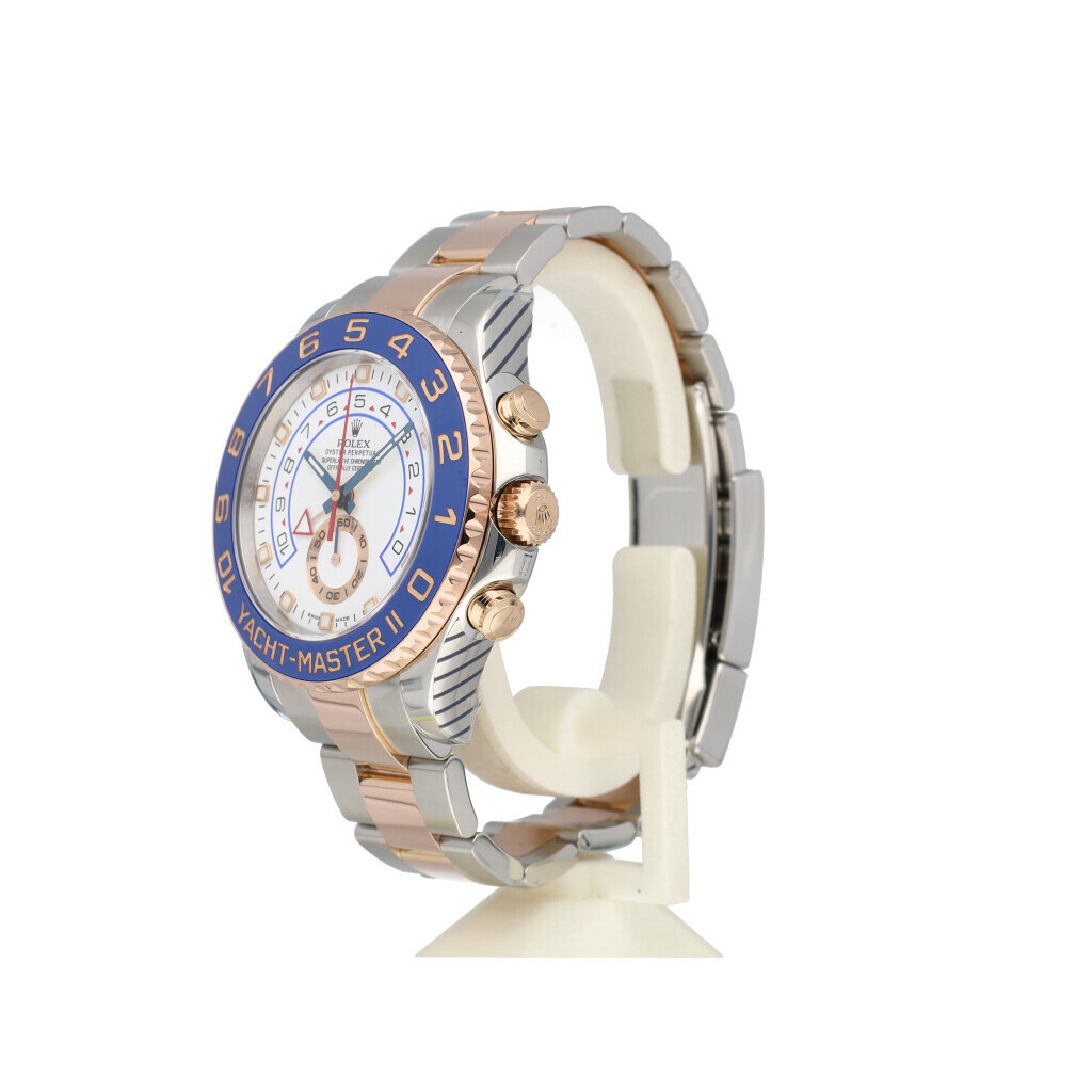In very good condition Rolex Yacht-Master II in steel and rose gold from 2017 complete with box and papers. Rolex serviced 1-2026 and not worn since. Rolex service certificate included.